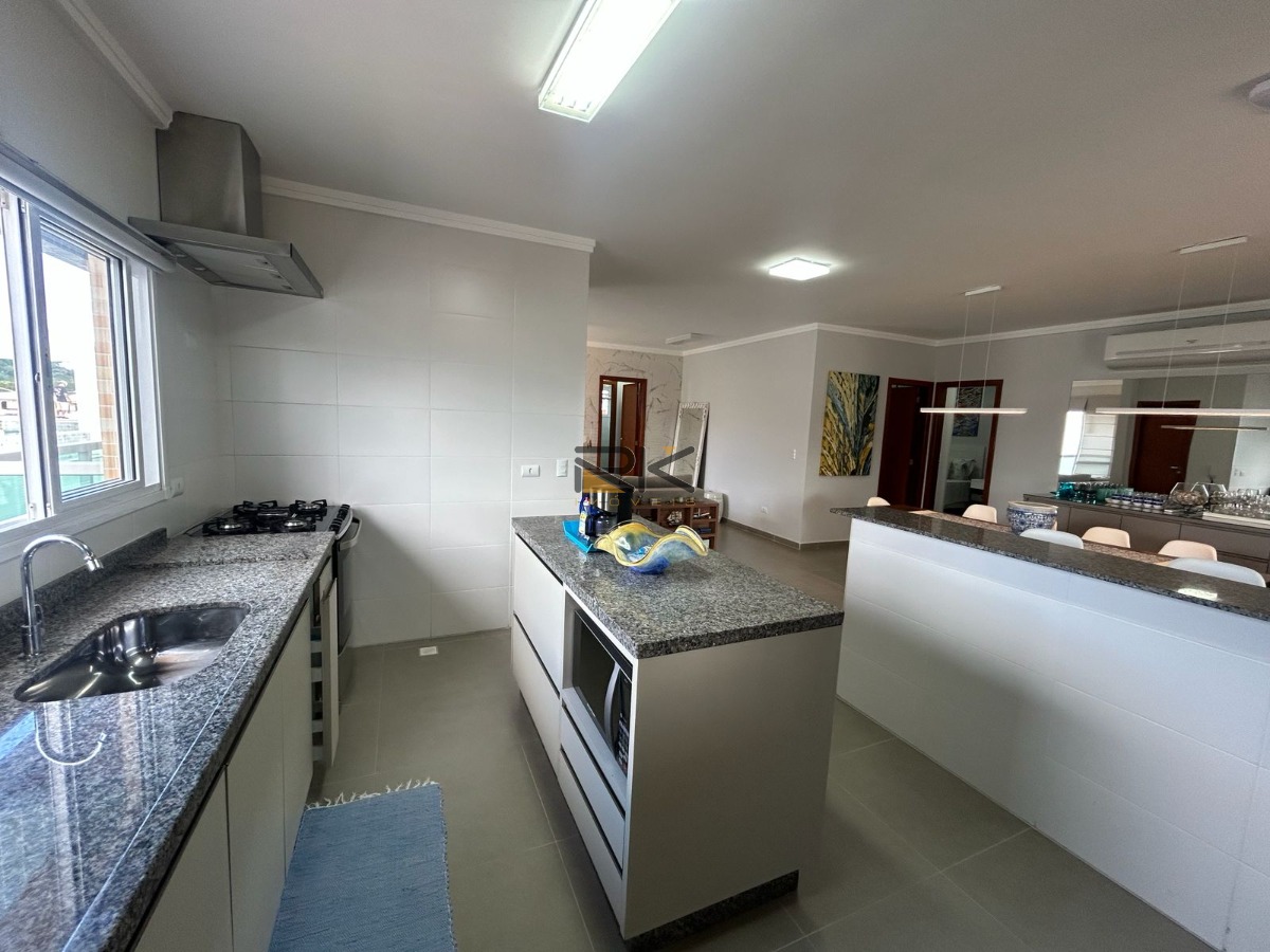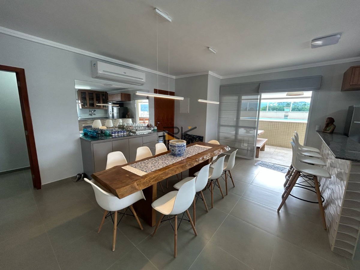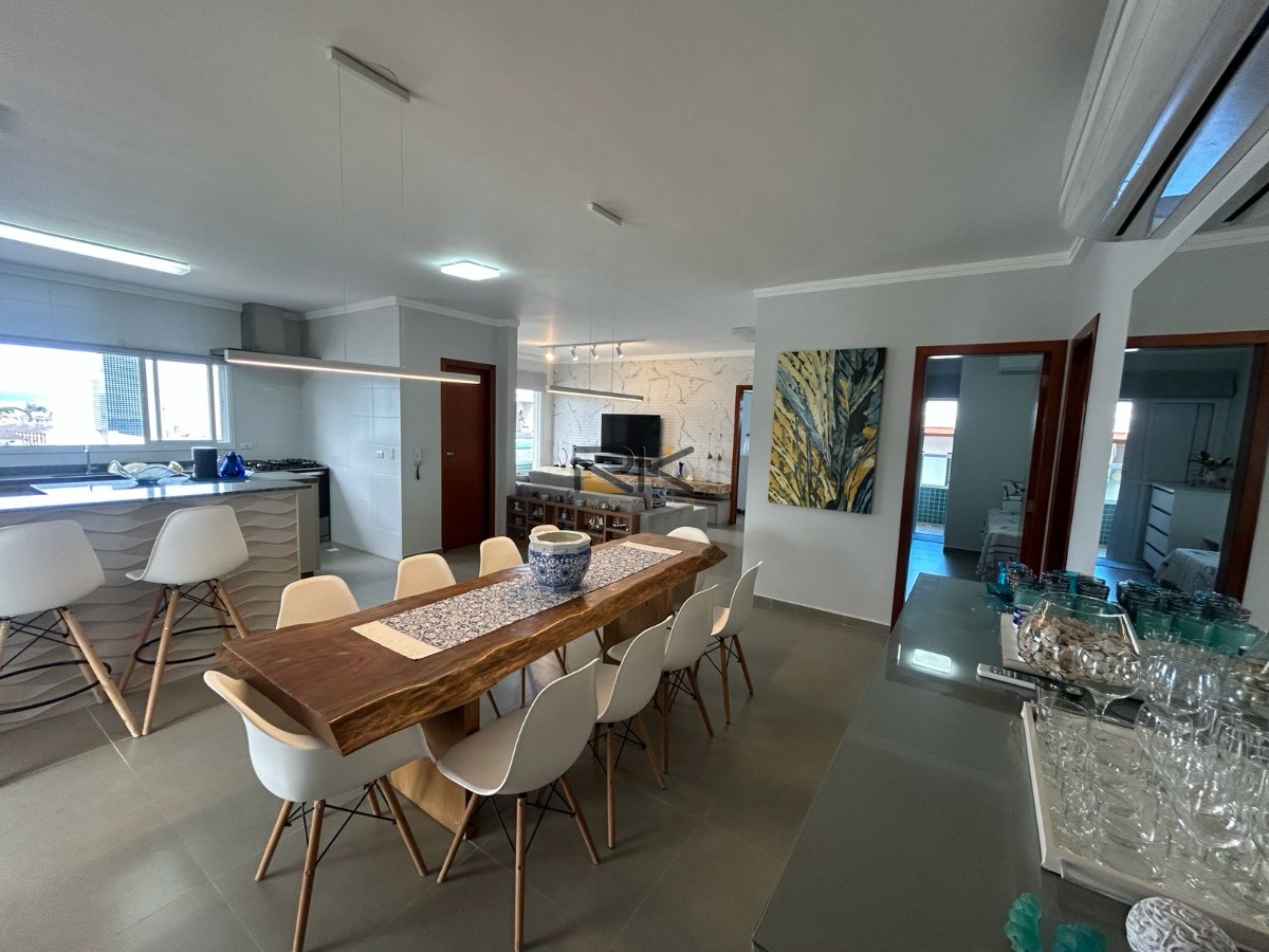 Esta penthouse foi planejada para quem busca viver o melhor do litoral com elegância e praticidade. Logo ao entrar, você é recebido por uma ampla sala de estar e jantar integrada, com ambientes harmoniosos, decoração refinada e excelente iluminação natural. A cozinha integrada complementa o espaço, moderna e funcional. O imóvel conta ainda com um lavabo que atende à área social.