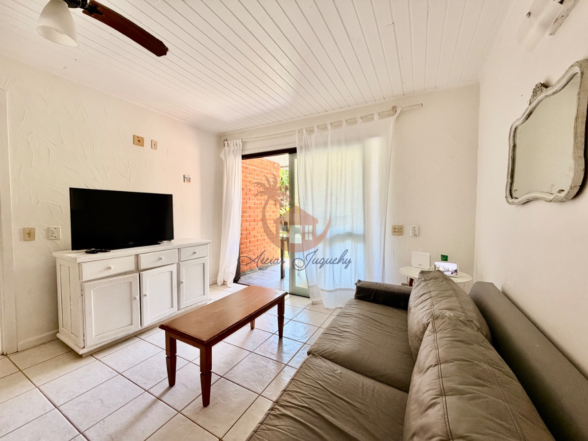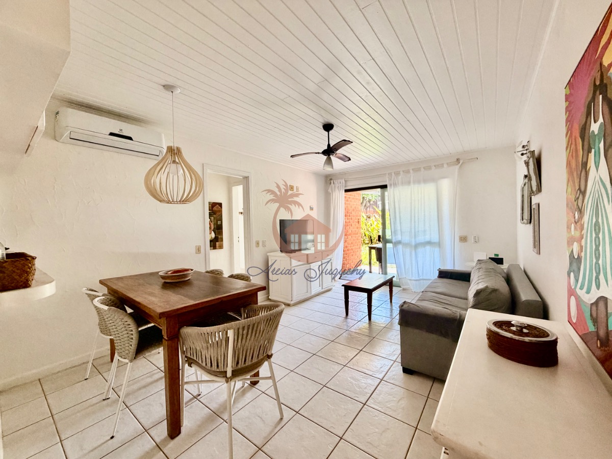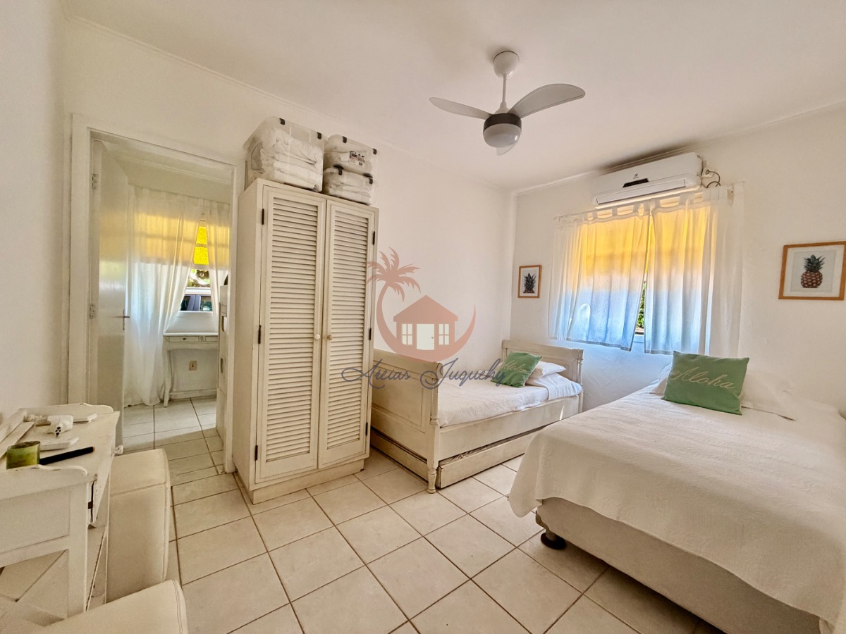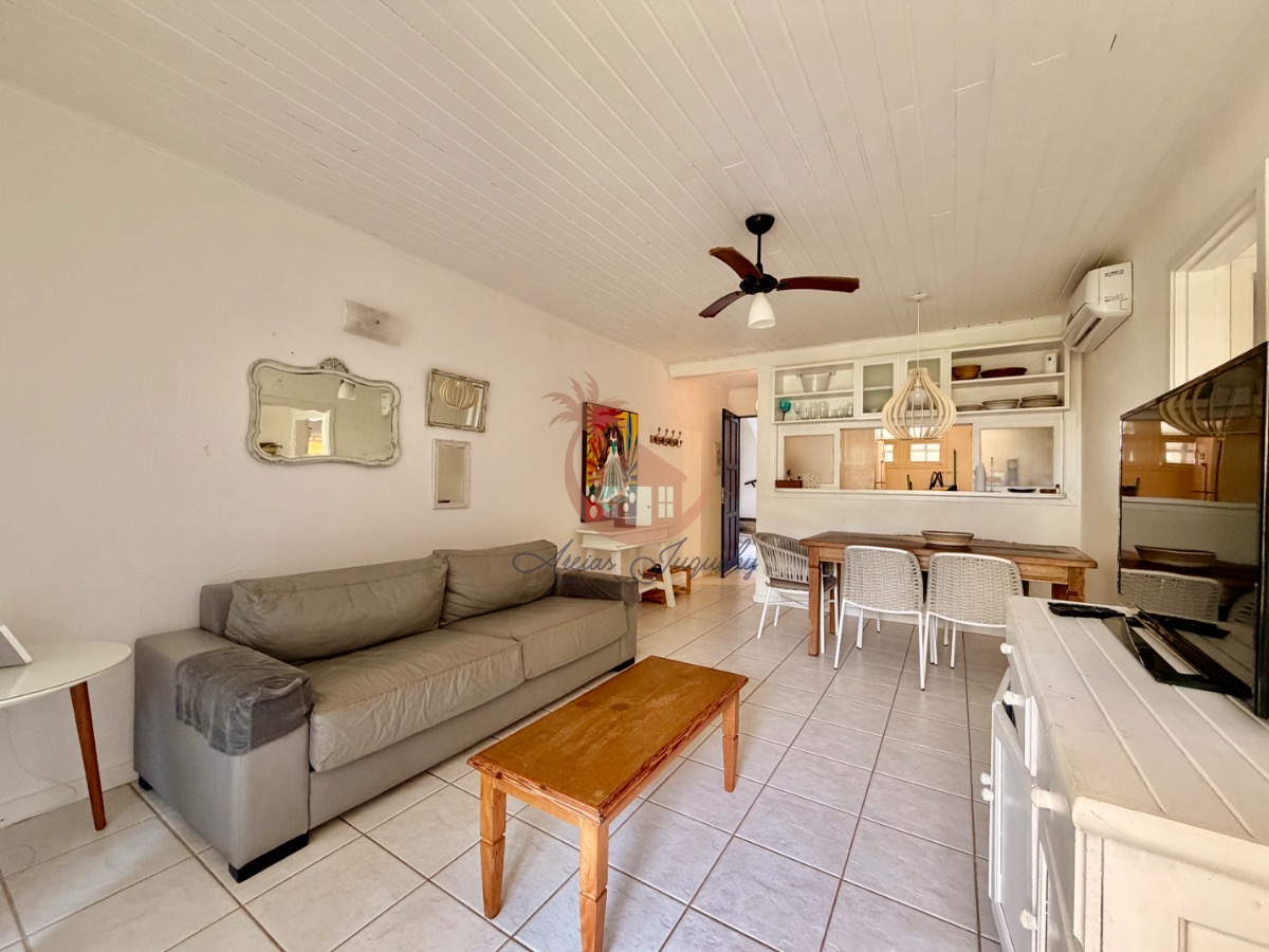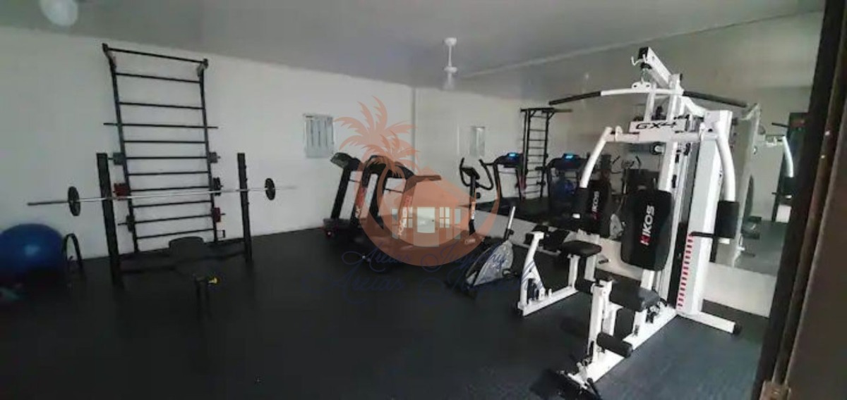 O imóvel ainda possui uma churrasqueira, ventiladores e ar-condicionado, além de uma sacada e varanda que permitem desfrutar da brisa do mar.