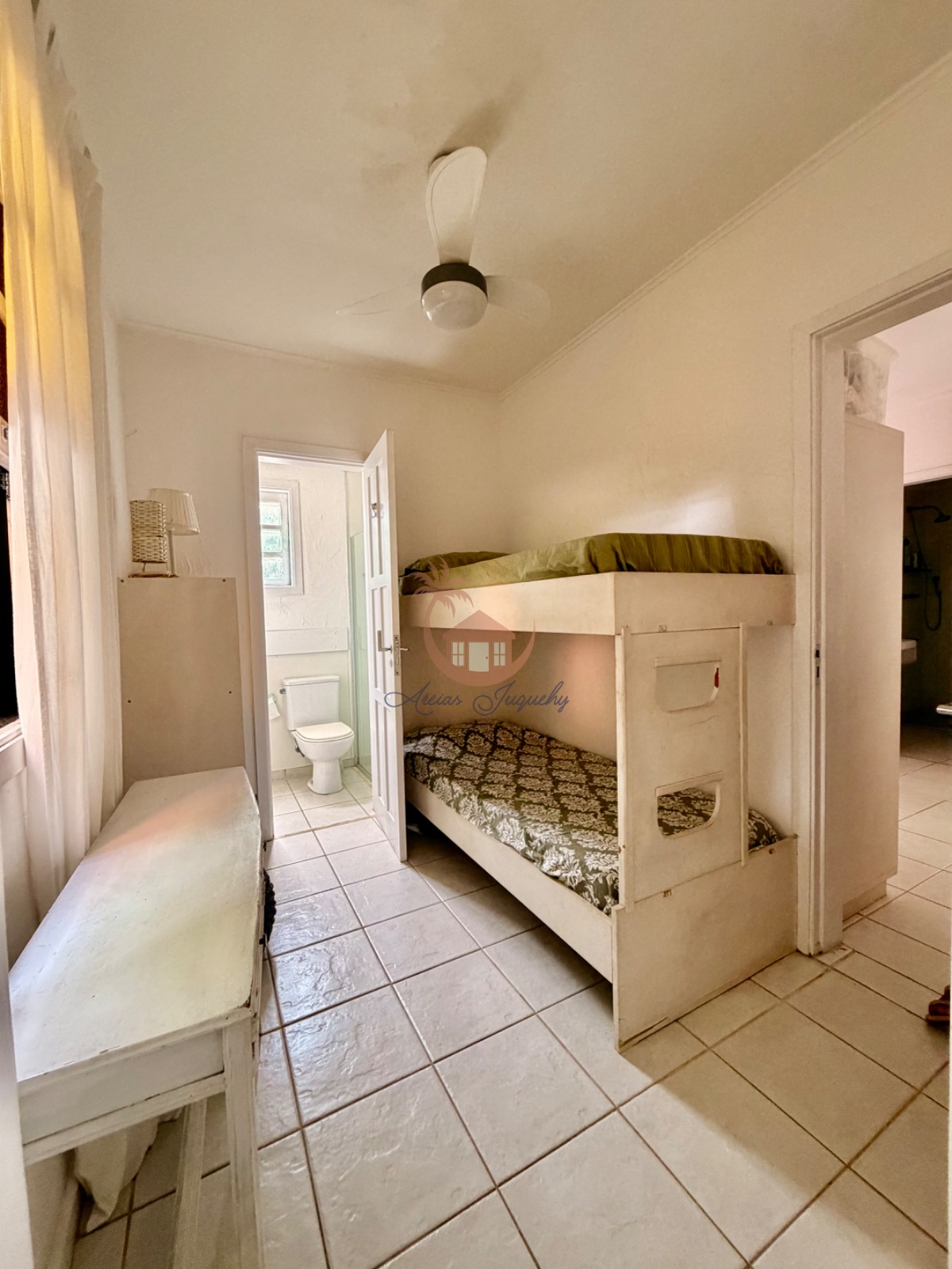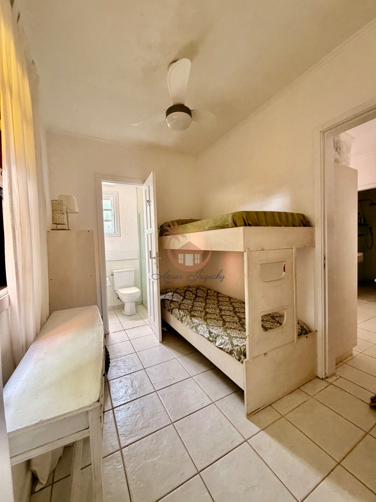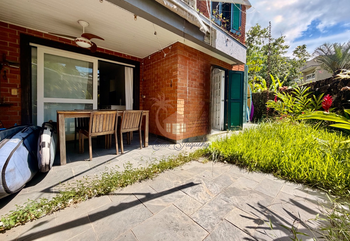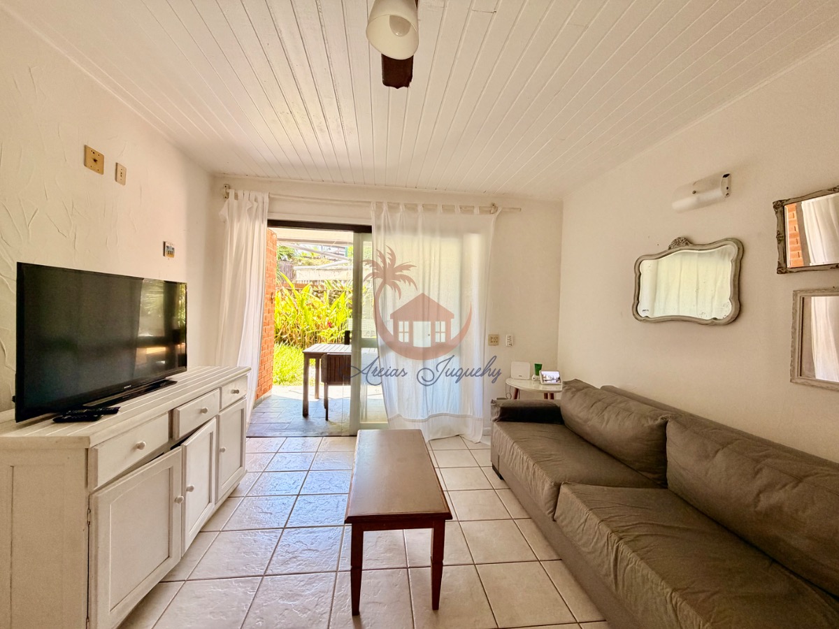 O imóvel ainda possui uma churrasqueira, ventiladores e ar-condicionado, além de uma sacada e varanda que permitem desfrutar da brisa do mar.