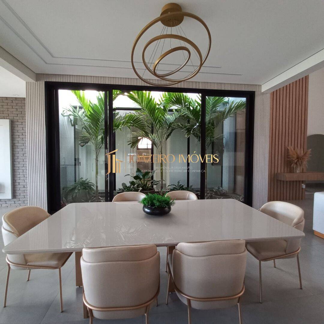 Casa Plana de Alto Padrão à Venda no Condomínio Gran Royalle – Lagoa Santa/MGDescubra o equilíbrio perfeito entre elegância, modernidade e funcionalidade nesta incrível casa plana localizada no prestigiado Condomínio Gran Royalle. Projetada para oferecer máximo conforto e praticidade, esta residência impressiona pela arquitetura contemporânea, acabamento refinado e ambientes integrados que valorizam a iluminação natural. Com 4 quartos, sendo 2 suítes com closet e 2 semi-suítes, a casa foi cuidadosamente planejada para proporcionar conforto e privacidade a toda a família. A sala de estar, com pé direito duplo e imponente porta de 4,5 metros em ACM, cria uma atmosfera sofisticada desde o primeiro contato. A residência conta com móveis planejados em todos os ambientes, garantindo organização e elegância em cada detalhe. A cozinha moderna e funcional, integrada à despensa com armário, se destaca pela praticidade e excelente aproveitamento dos espaços. Para quem aprecia receber amigos e desfrutar de momentos especiais, a área gourmet é um espetáculo à parte. Equipada com churrasqueira e banheiro independente, integra-se à piscina com hidromassagem, cascata e aparelho de ozônio, além de uma sauna integrada à piscina, proporcionando uma experiência completa de lazer e bem-estar. O projeto também contempla um maravilhoso oratório iluminado, um jardim de inverno central com vista para diversos ambientes, além de um moderno projeto luminotécnico que valoriza desde a fachada até a área de lazer, criando cenários perfeitos para todos os momentos. Os banheiros possuem pias esculpidas, armários, espelhos e box instalados. A lavanderia ampla garante ainda mais praticidade no dia a dia. A garagem coberta comporta até 3 carros, oferecendo conforto e segurança. Destaques do imóvel:Casa 100% plana 4 quartos (2 suítes com closet + 2 semi-suítes) Sala com pé direito duplo e porta imponente em ACM Móveis planejados em todos os ambientes Cozinha moderna + despensa integrada com armário Área gourmet com churrasqueira Piscina com hidromassagem, cascata e ozônio Sauna integrada à piscina Banheiro externo para área de lazer Oratório iluminado Jardim de inverno central Projeto luminotécnico completo Banheiros com pias esculpidas, armários, box e espelhos Lavanderia ampla Garagem coberta para 3 carros Venha conhecer essa joia da arquitetura moderna no Gran Royalle e se encantar com cada detalhe! Características do imóvel Área de serviço Área Gourmert Churrasqueira Closet Copa Cozinha Decorado Despensa Escritório Jardim Lavanderia Piscina Porcelanato Quintal Sala de jantar Varanda