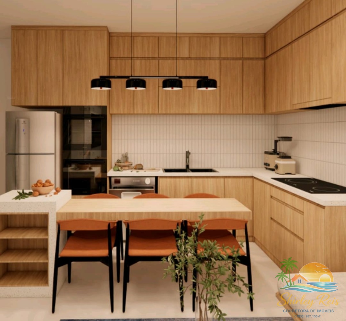 A cozinha é bem distribuída, oferecendo praticidade para o preparo das refeições.
