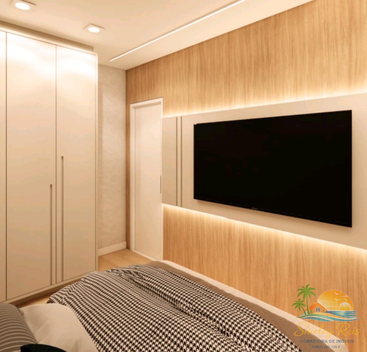 O apartamento ainda dispõe de uma suíte, além de um banheiro social, garantindo privacidade e conforto.