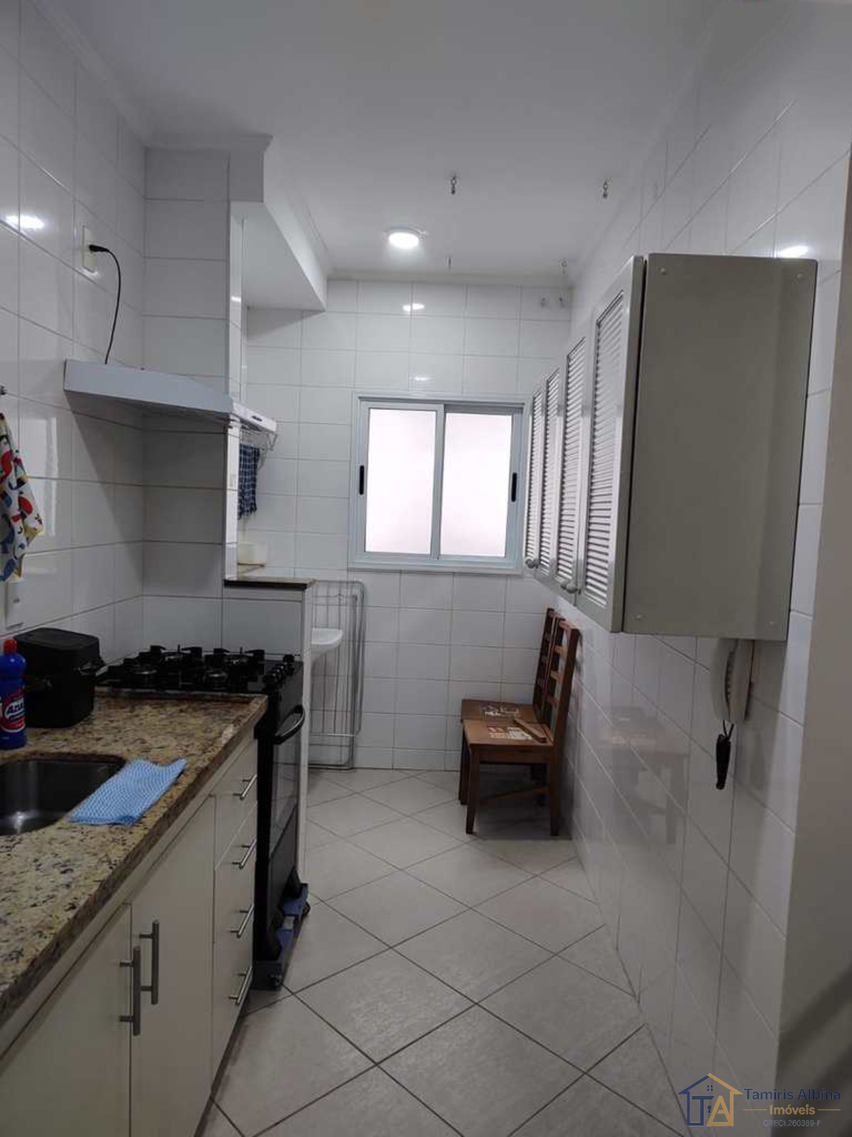 A cozinha é equipada com armário, proporcionando organização e funcionalidade.