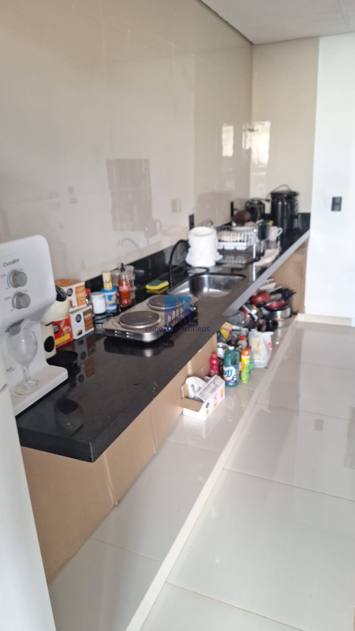 A cozinha é prática e bem distribuída, facilitando o preparo das refeições.