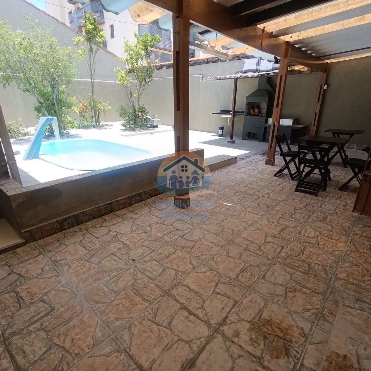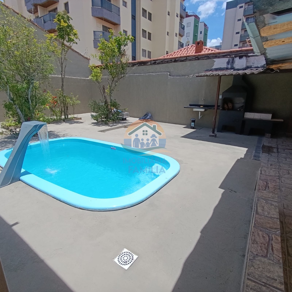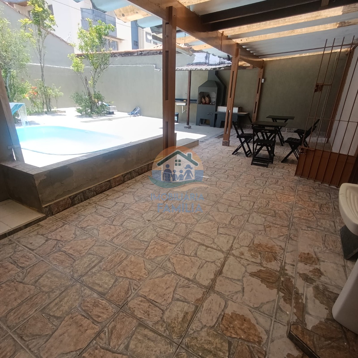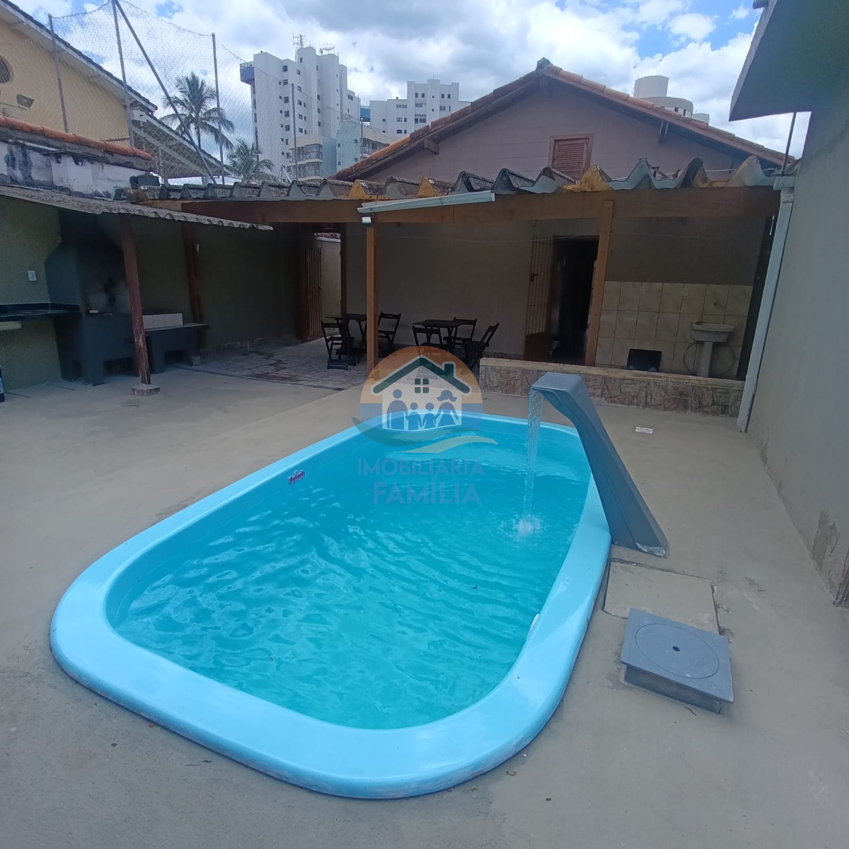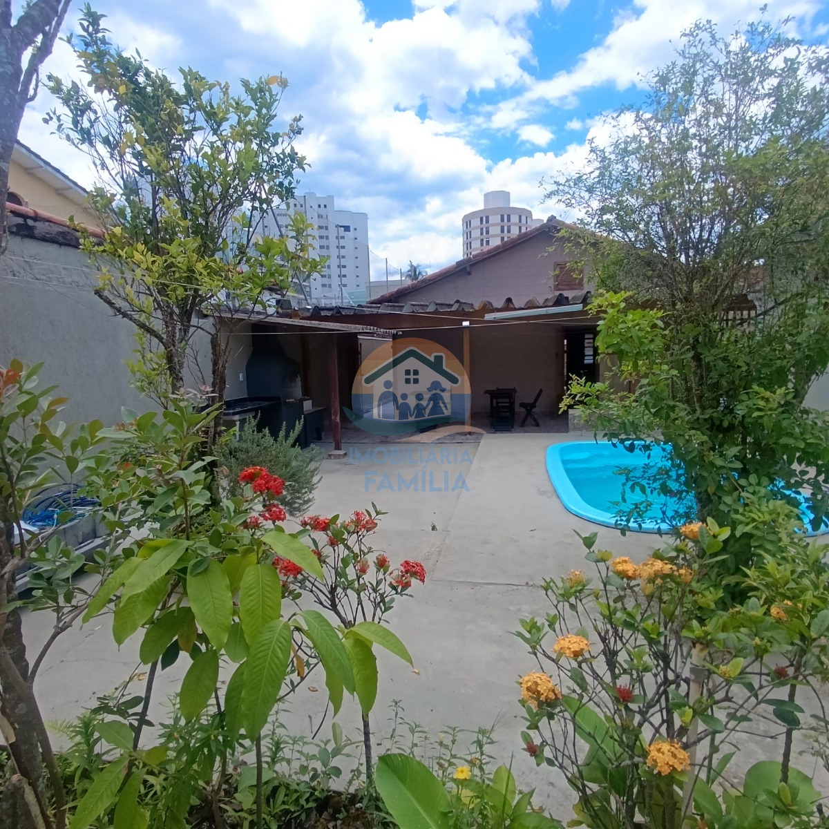 Imóvel contando com dois dormitórios amplos, sala de estar integrada á cozinha espaçosa tipo americana, banheiro social, área de serviços, amplo quintal com banheiro social externo, área gourmet com churrasqueira à carvão, piscina com cascata e 02 vagas de garagem.