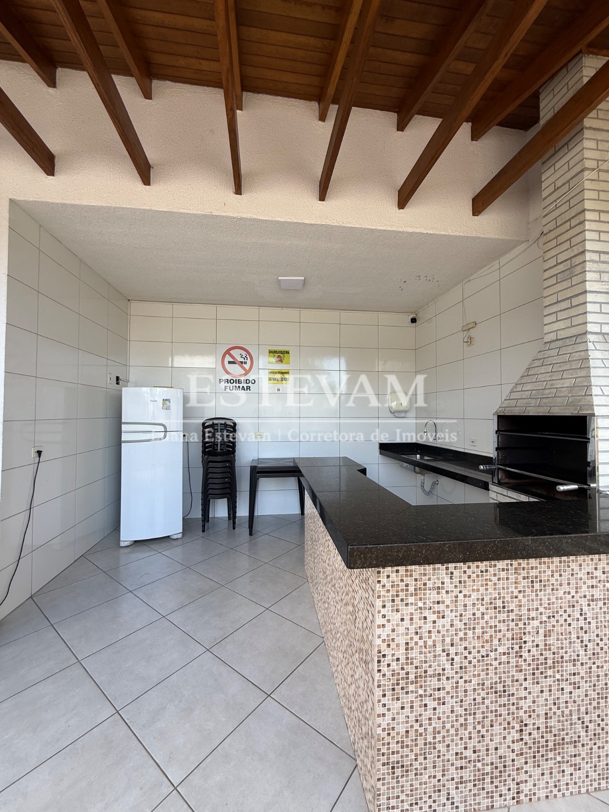 A área privativa inclui uma churrasqueira, perfeita para momentos de lazer.