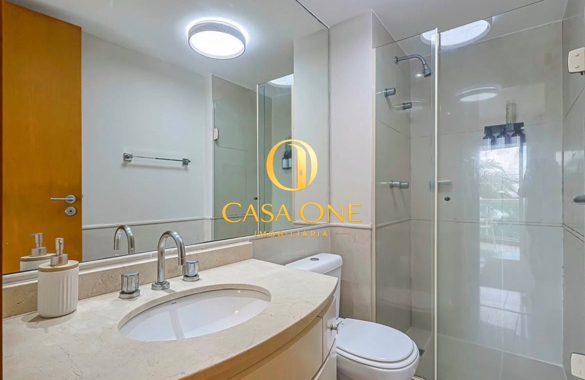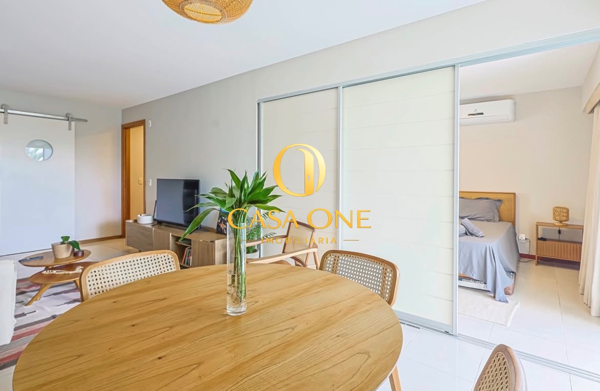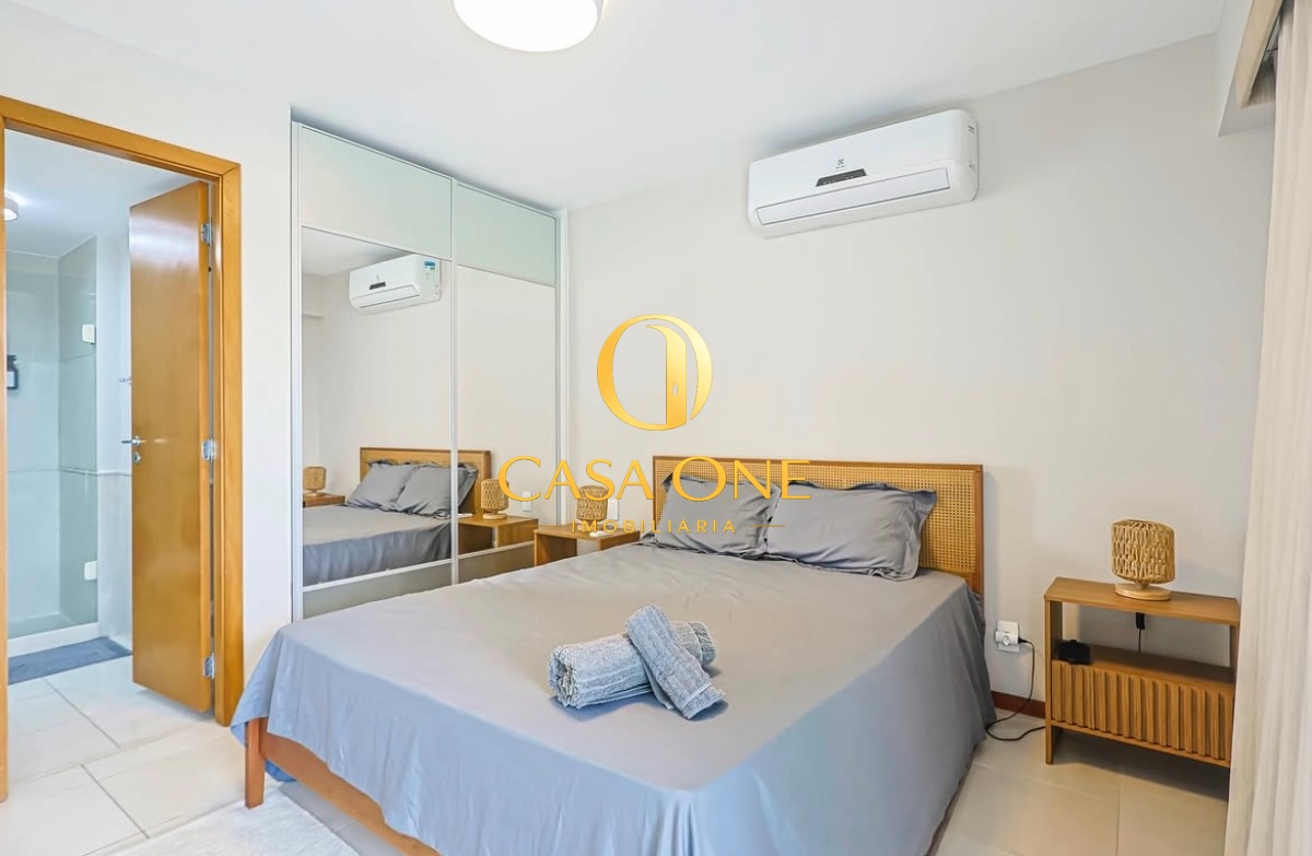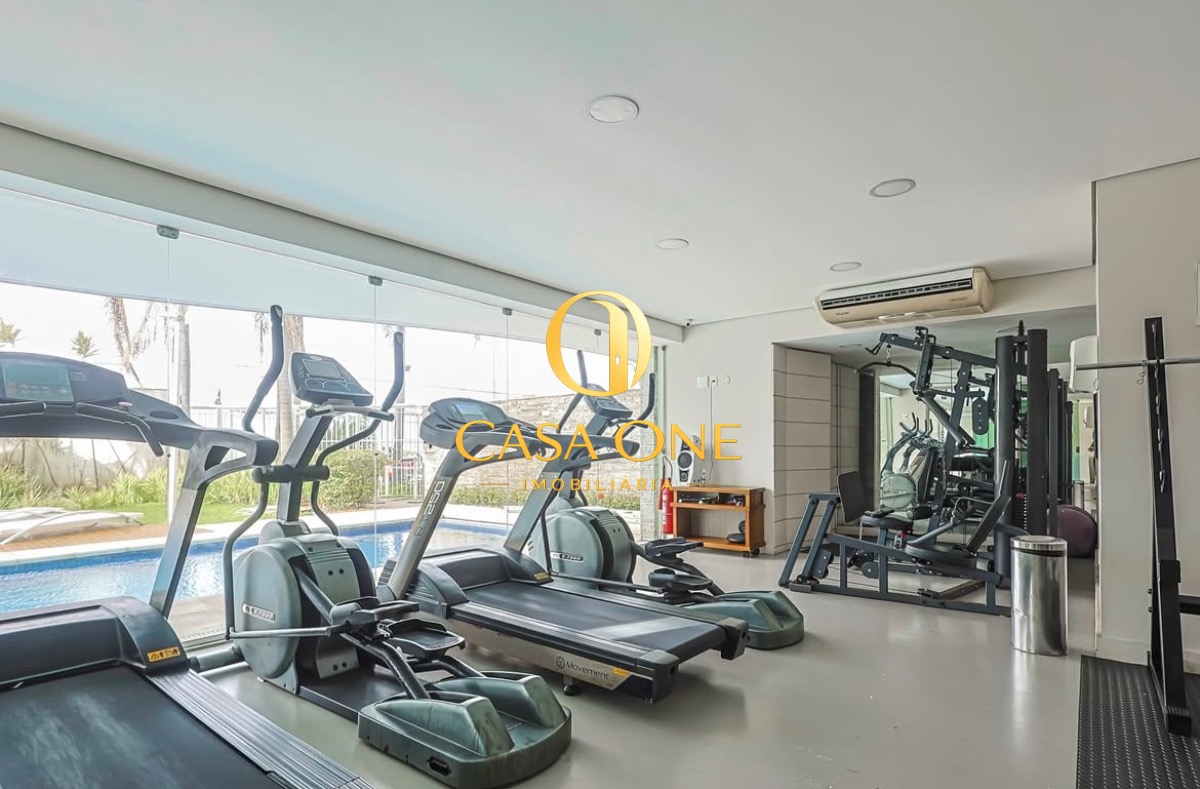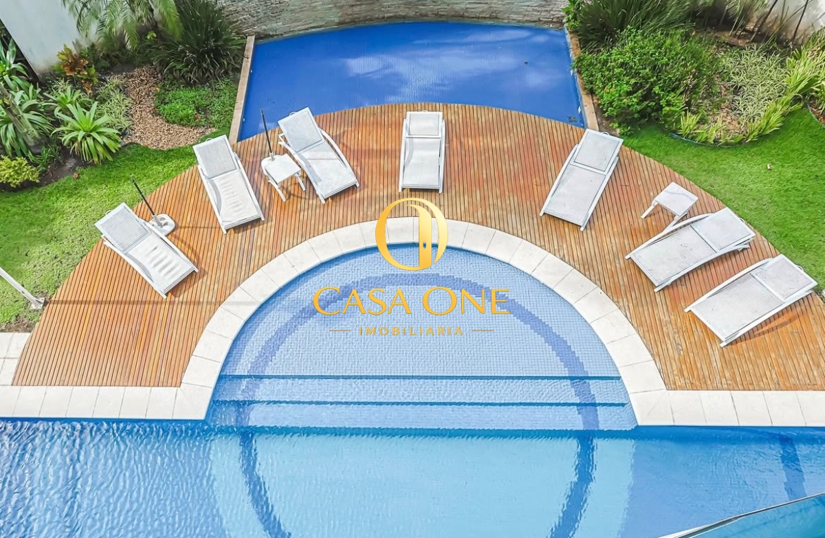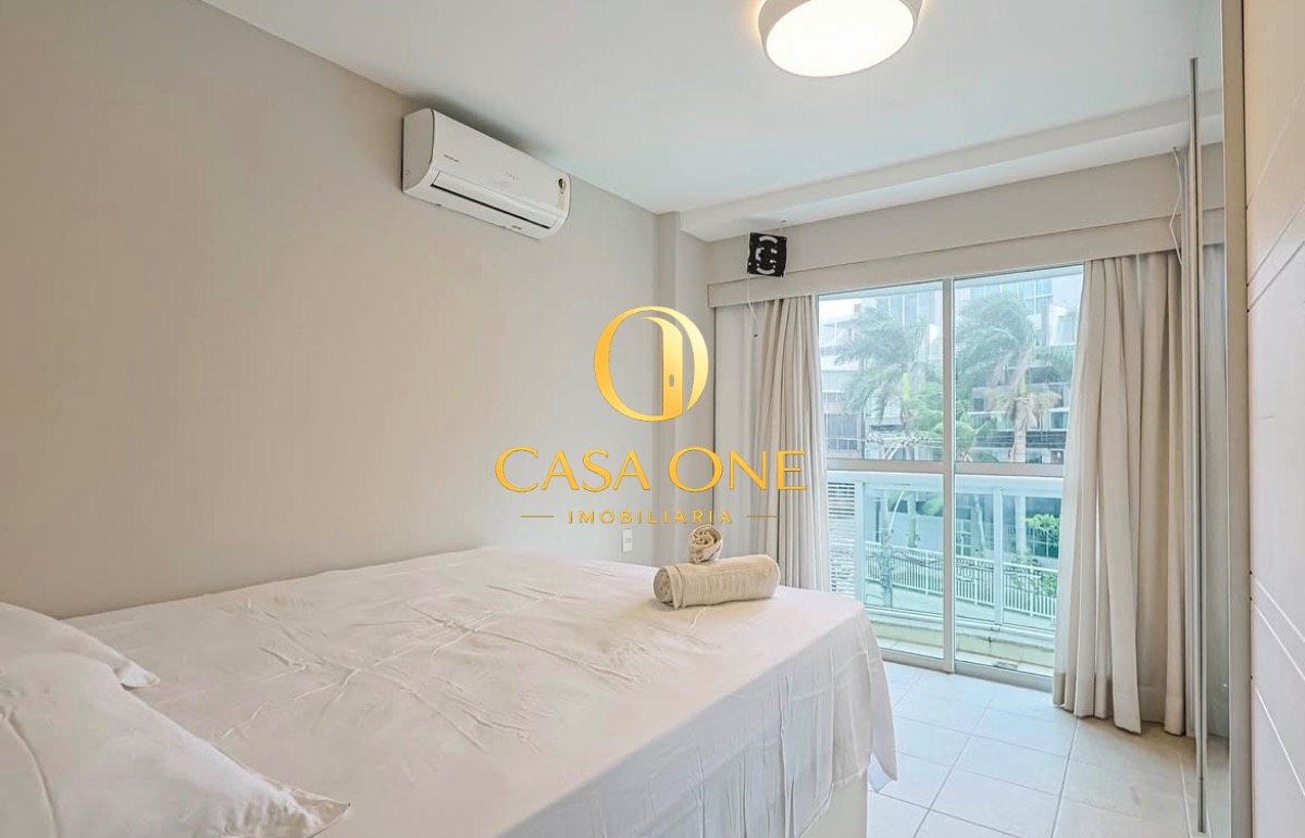 O apartamento também conta com ar condicionado, varanda e uma garagem, além de acesso direto à piscina e sauna.