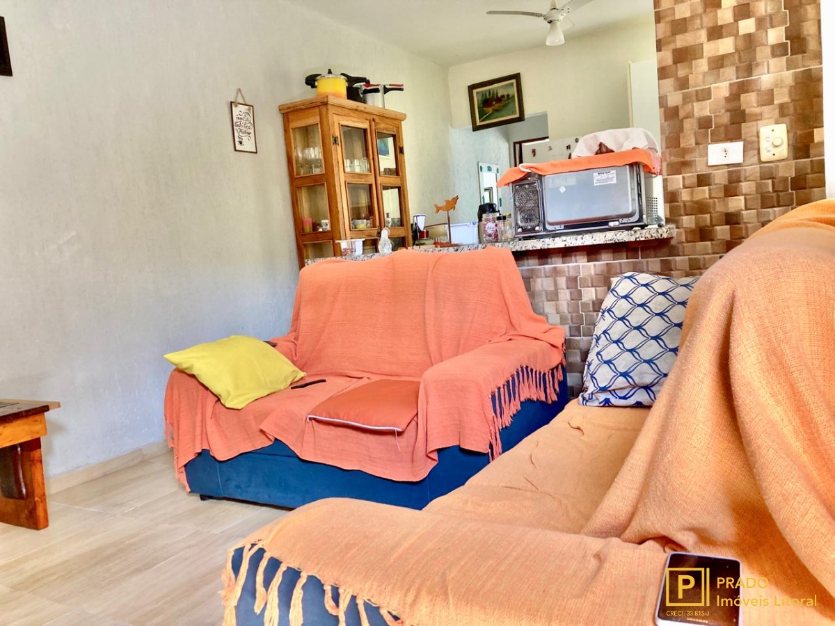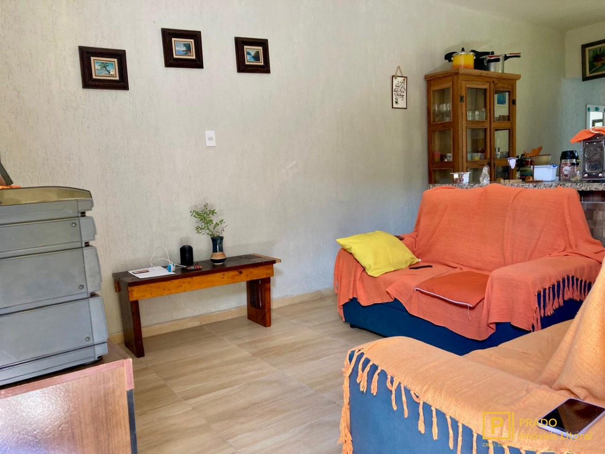 Casa geminada com 2 dormitórios sendo 1 suíte com churrasqueira, 600m da praia.