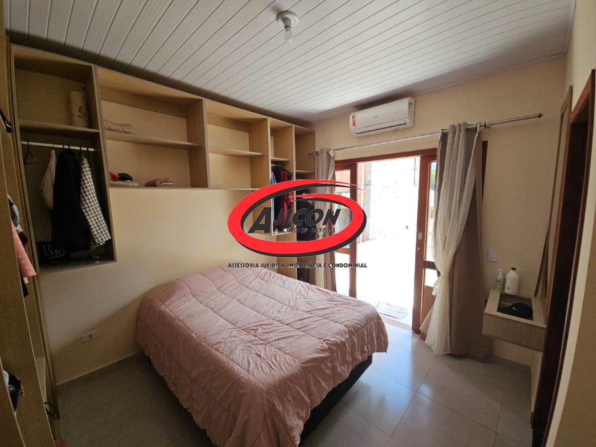 Piso superior: Possui 2 dormitórios, sendo 1 suíte, 2 banheiros (sendo 1 da suíte), armários embutidos nos quartos, ar-condicionado, móveis planejados na cozinha, lavanderia, e churrasqueira no terraço com vista para as montanhas.