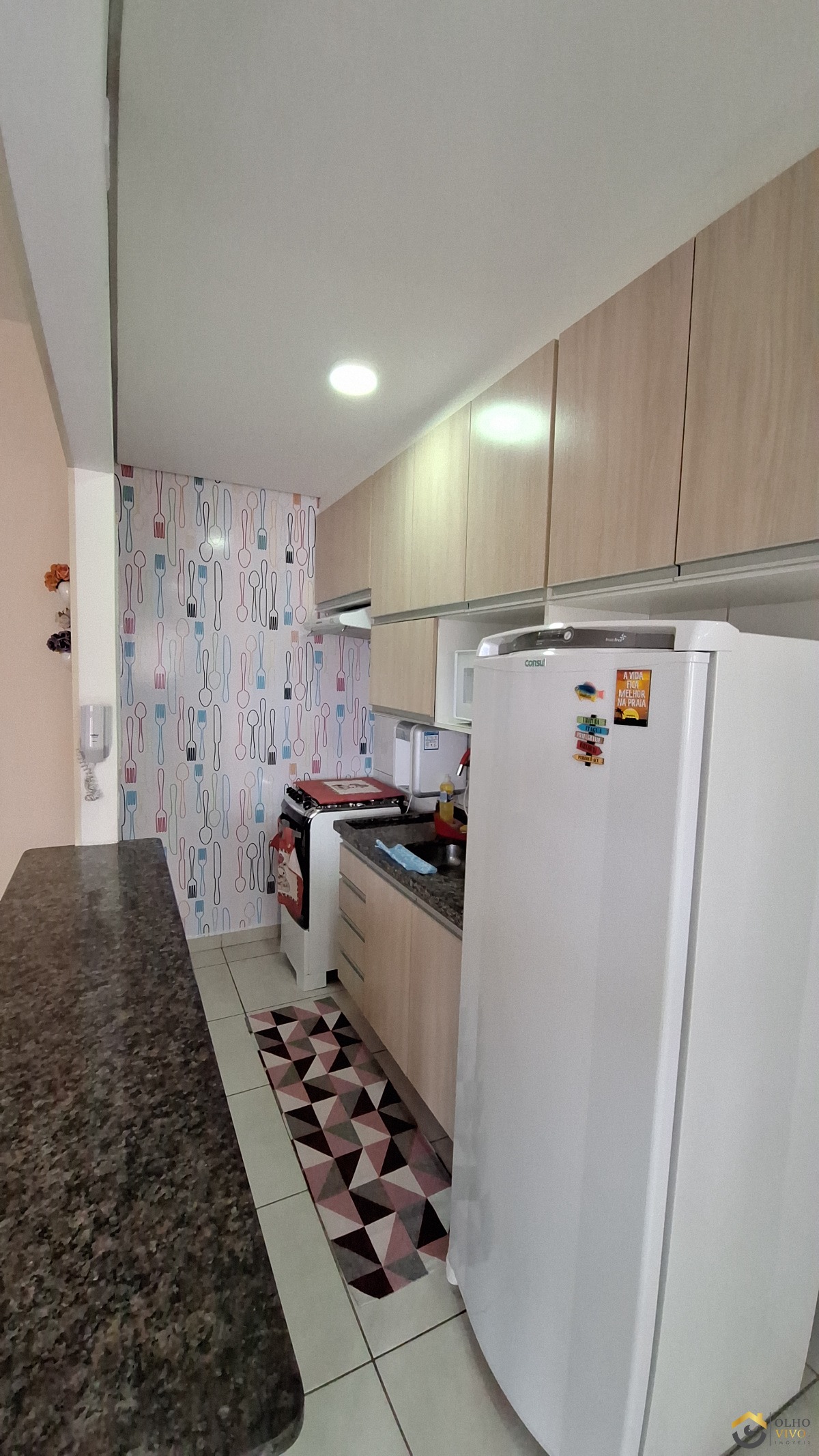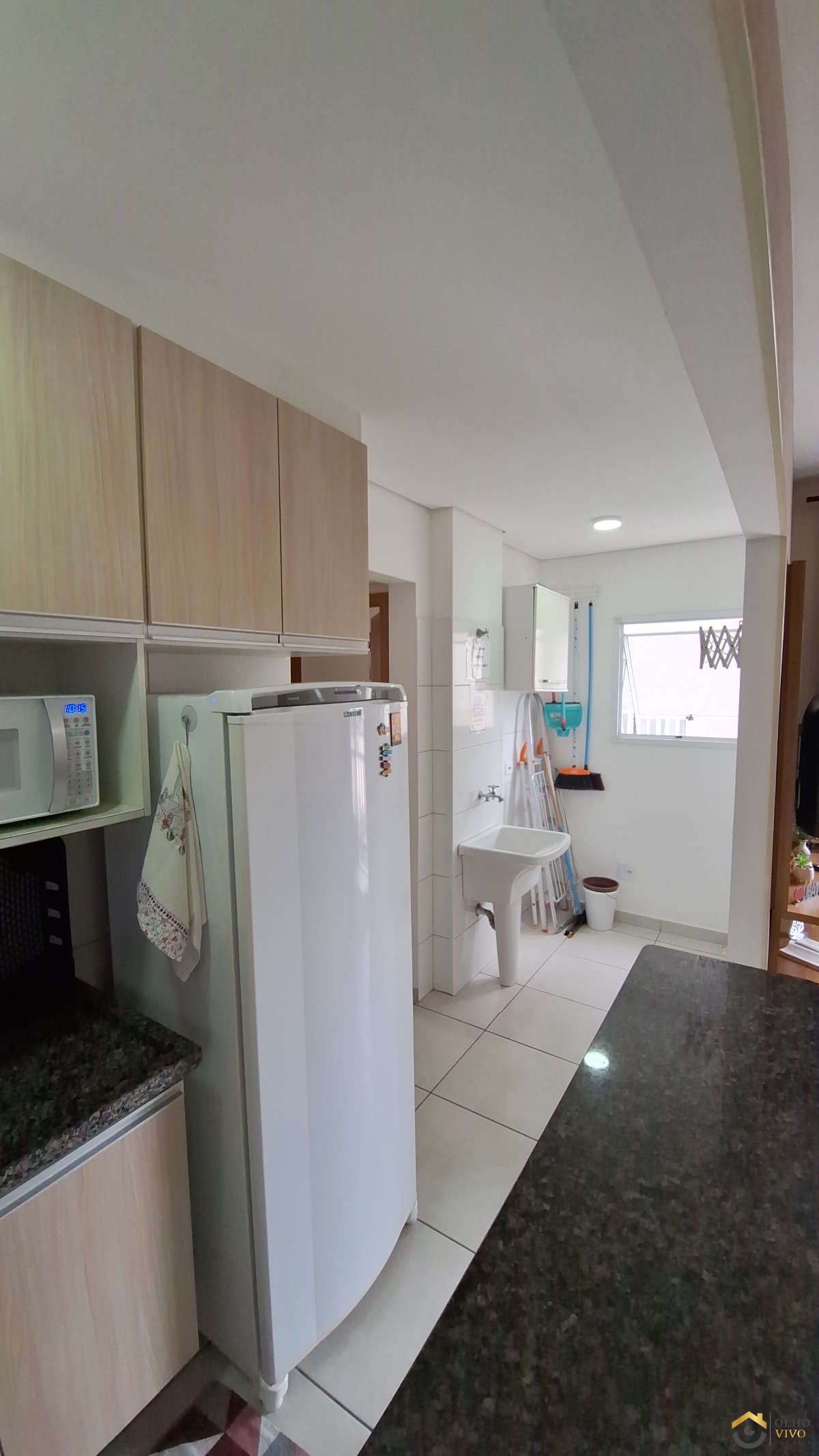 A cozinha é equipada com armário embutido, otimizando o espaço e garantindo organização.