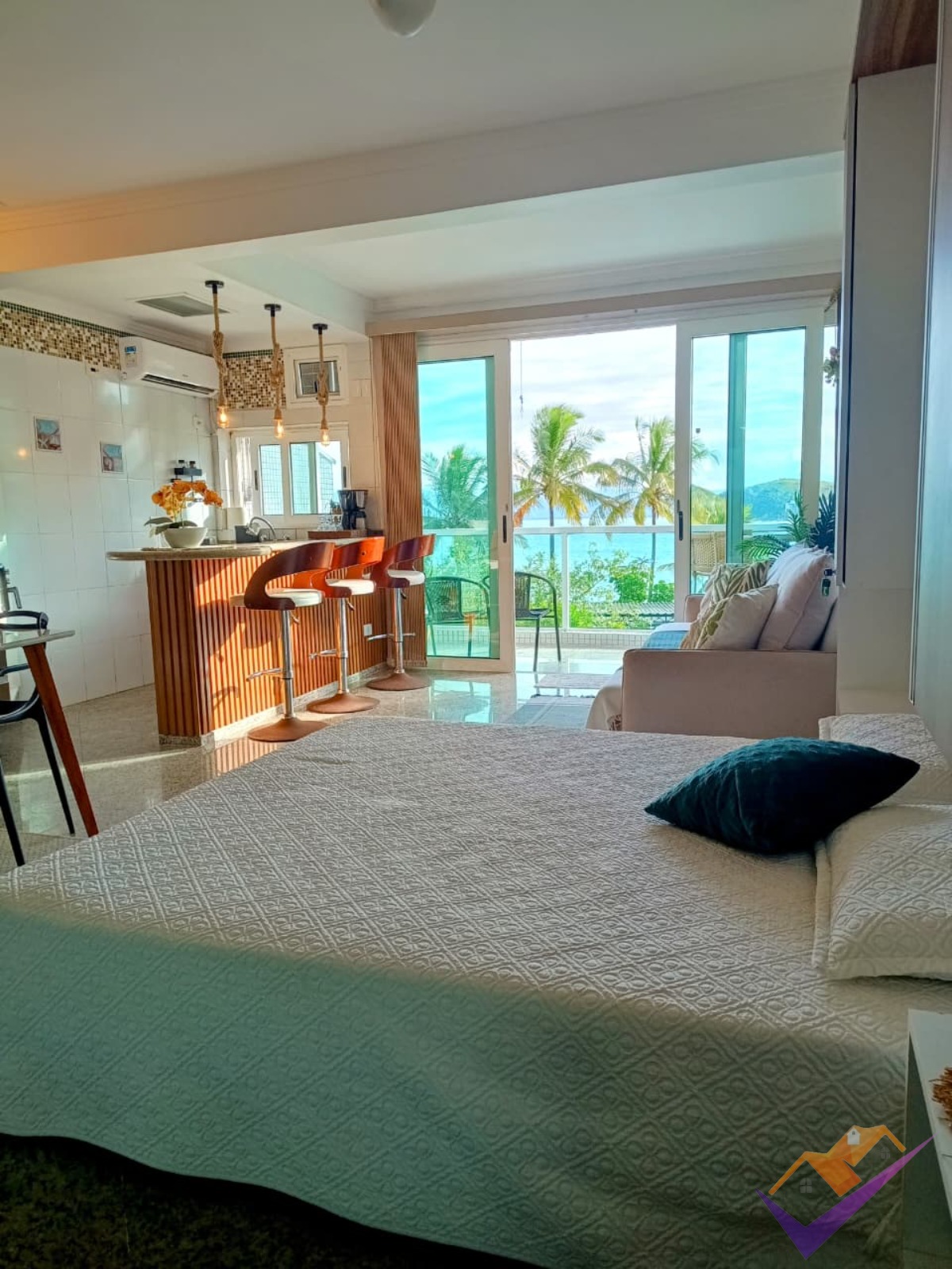 Este apartamento encanta logo de cara pela vista deslumbrante para o mar em todos os ambientes. Totalmente equipado, conta com ar-condicionado, máquina lava e seca, além de uma planta funcional com 1 suíte, sala integrada à cozinha e uma agradável sacada, perfeita para apreciar o visual.