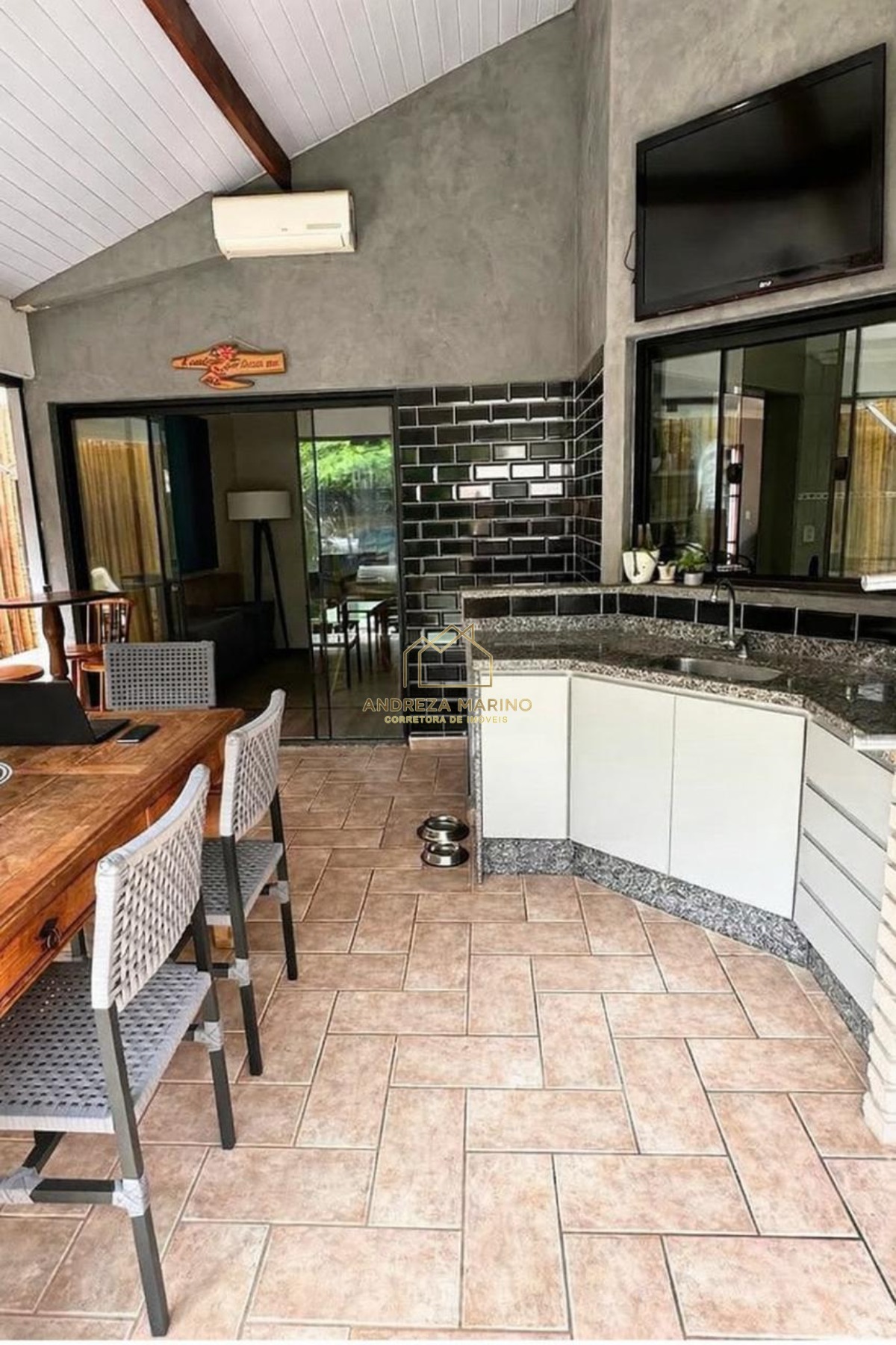 * Espaço gourmet integrado com fechamento em vidro