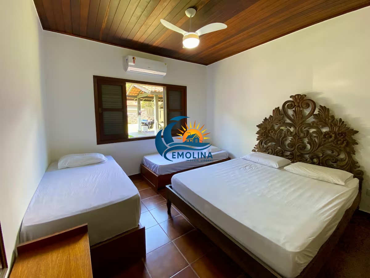 A casa também conta com comodidades como ar condicionado, ventiladores e Wi-Fi, tornando-a uma opção completa para quem busca conforto e praticidade.
