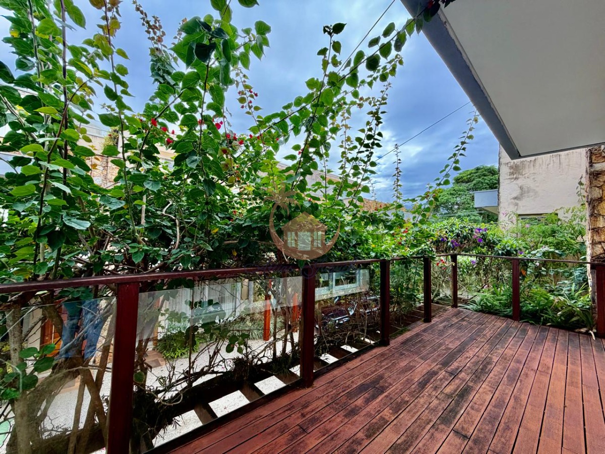 Para momentos de lazer, a casa conta com uma churrasqueira e um quintal, além de uma sacada e varanda que proporcionam uma vista agradável.