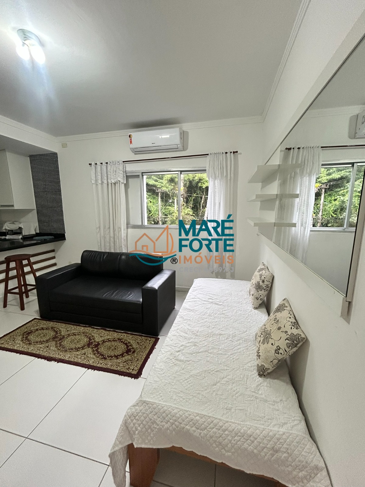 O apartamento está mobiliado e pronto para ser seu refúgio ou investimento. A sala e o quarto possuem ar condicionado.