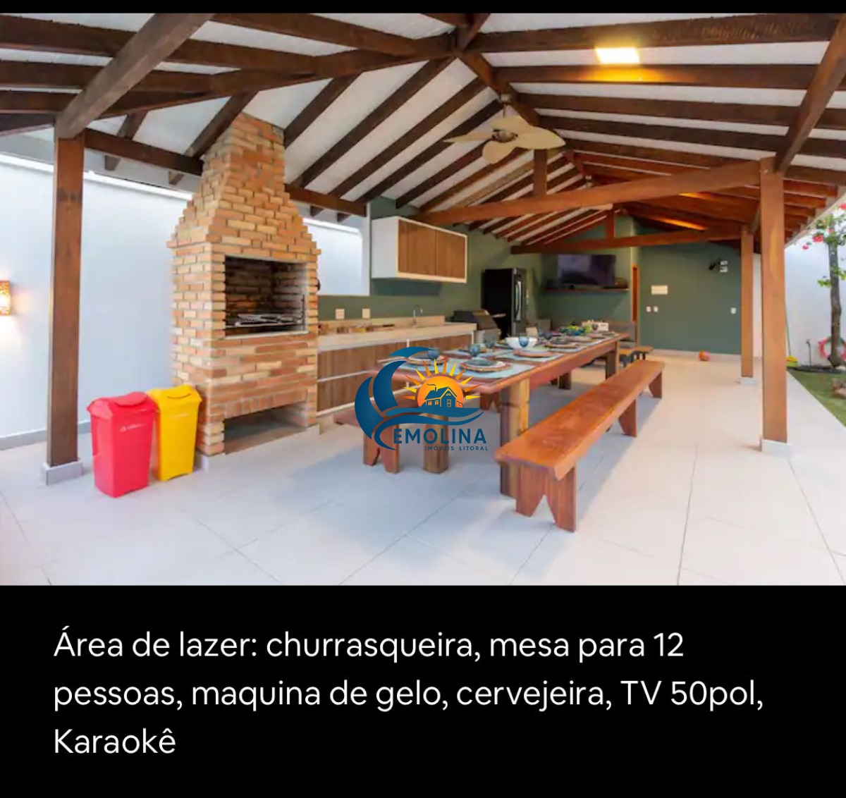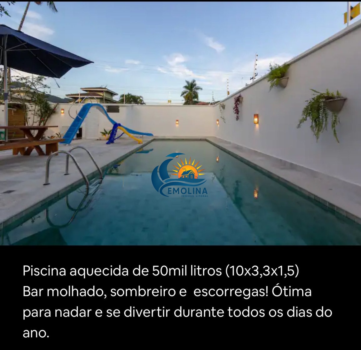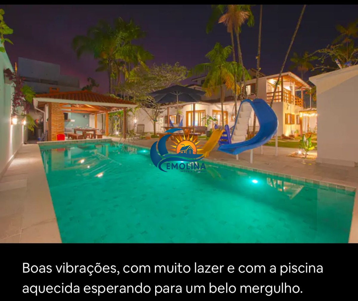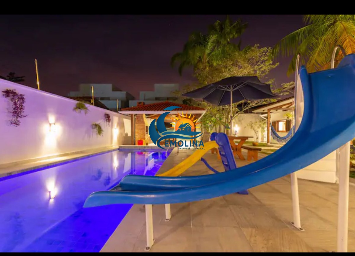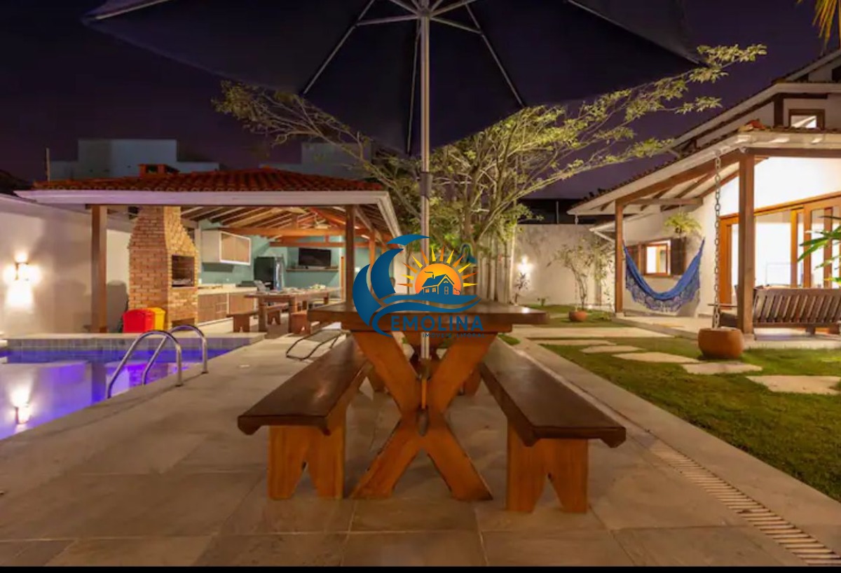 A casa tem piscina aquecida, serviço de praia, pet friendly, churrasqueira, forno de pizza, área gourmet e karaokê, escorregador de piscina , mini playground , cervejeira, maquina de gelo , mesa ping pong, 3 quartos térreos, casa a 7 minutos de caminhada ate a praia.