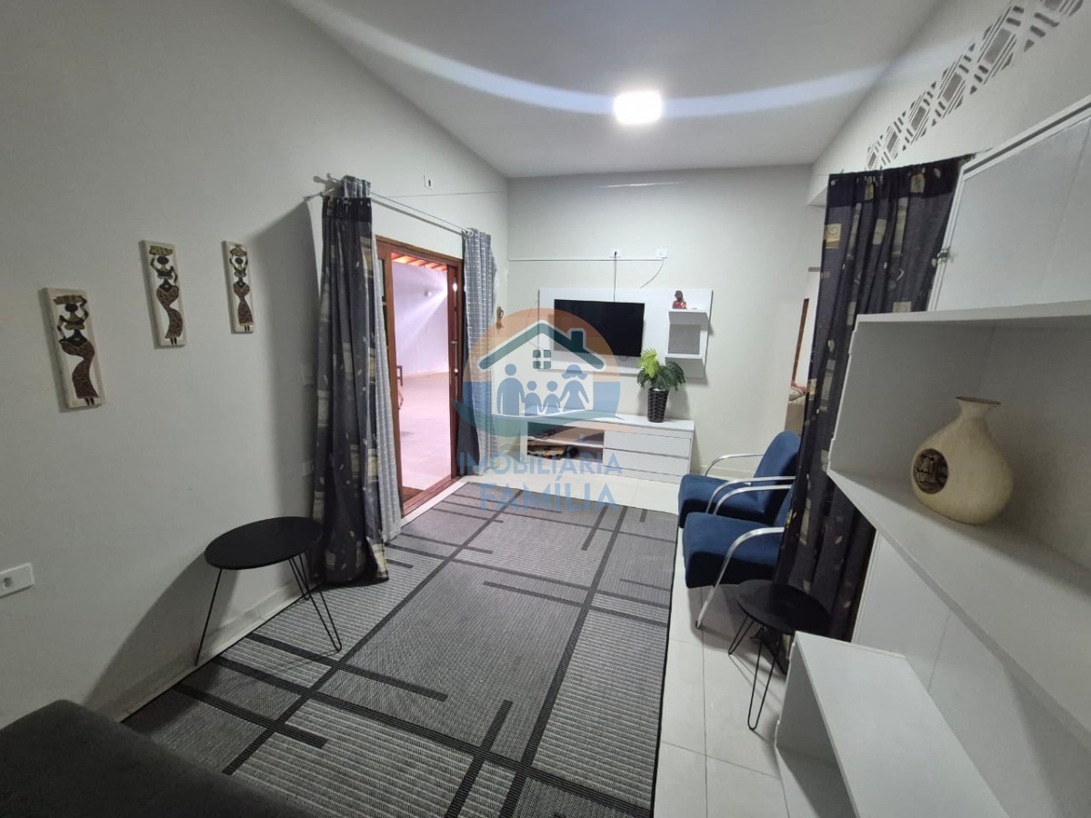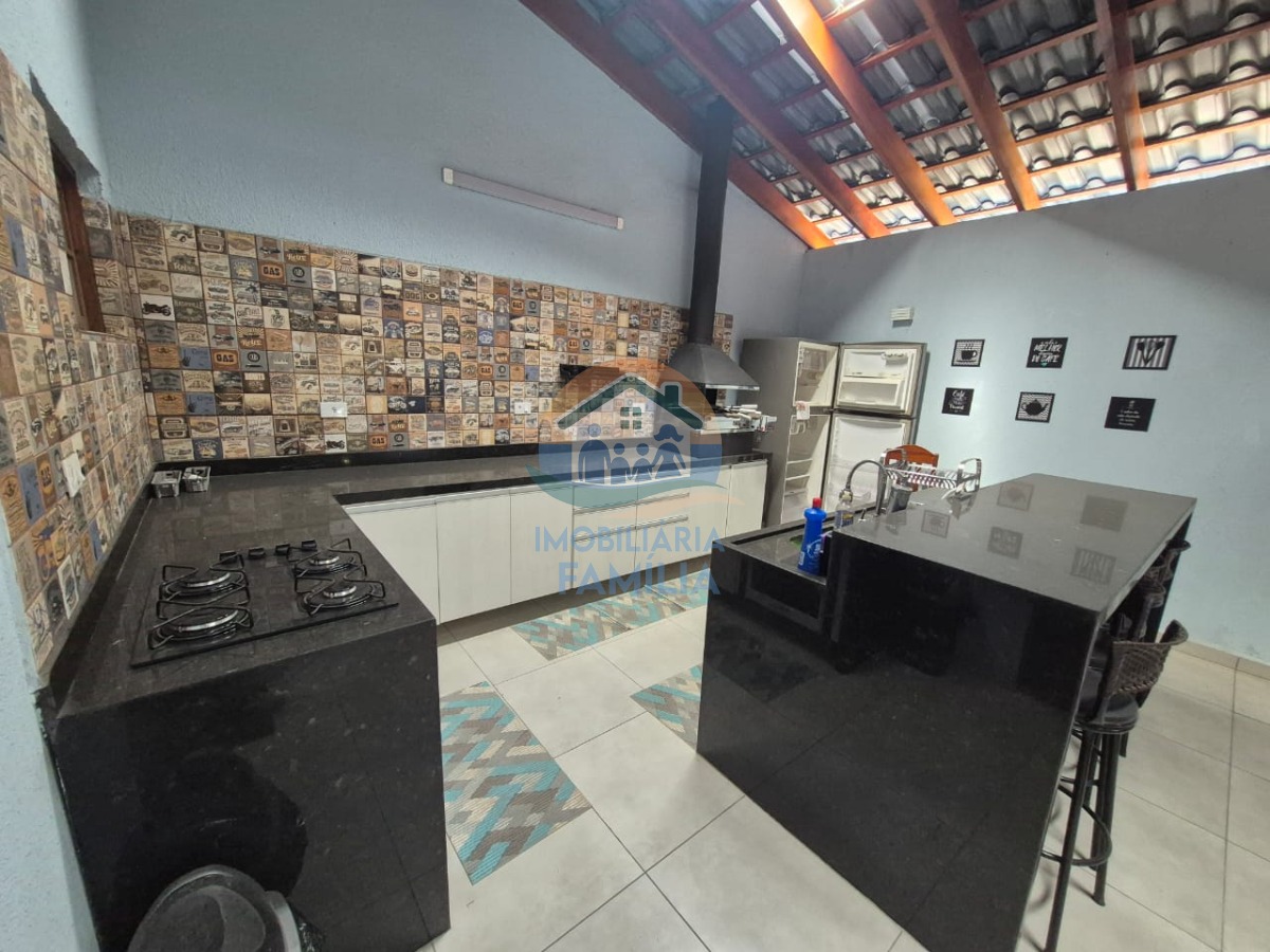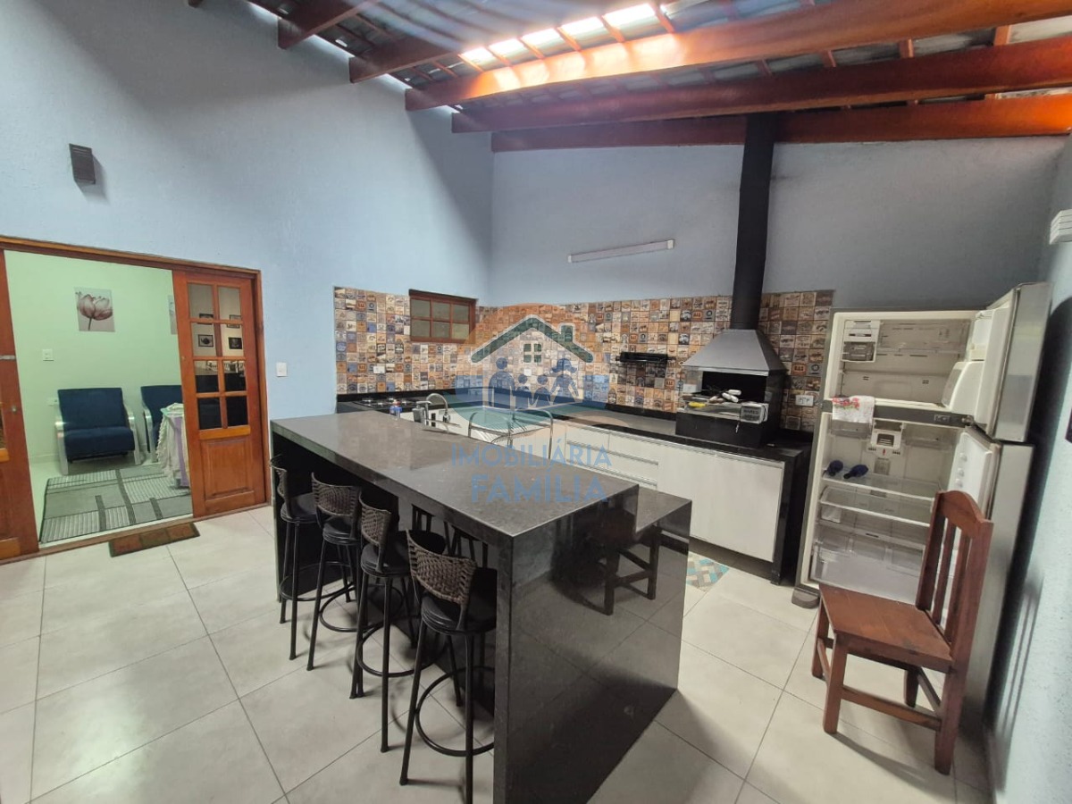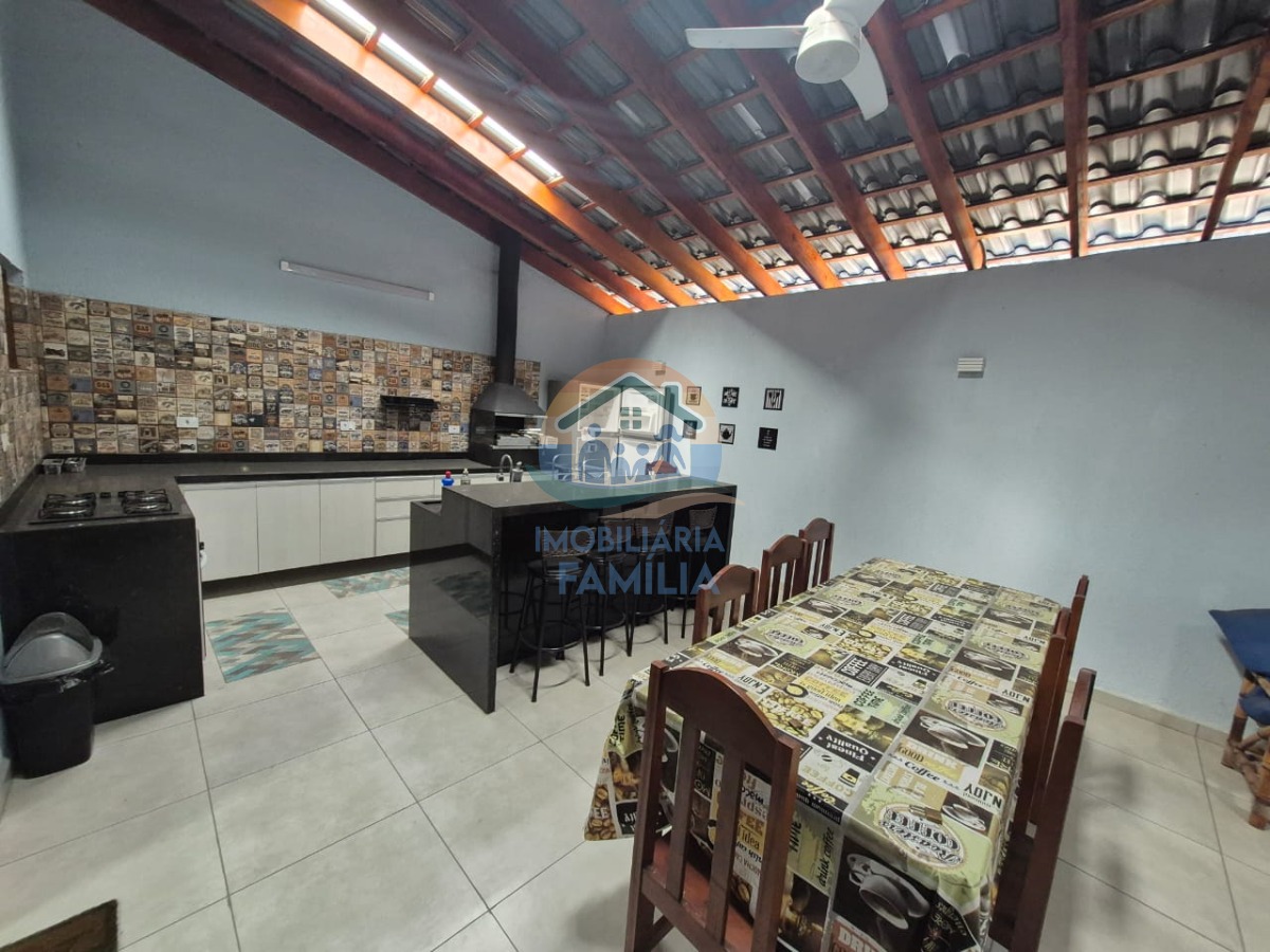 Com dois dormitórios ( sendo 1 suíte), sala de estar ampla, sala de jantar cozinha com pé direito alto, dois banheiros, área de serviços, área gourmet com churrasqueira carvão, uma linda ilha em pedra , com duas vagas de garagem coberta para automóveis.