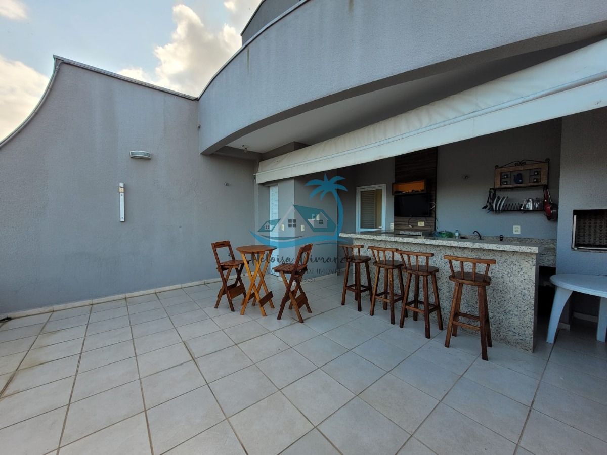 Área gourmet com churrasqueira e pia coberta com pergolado de vidro e 1 banheiro.