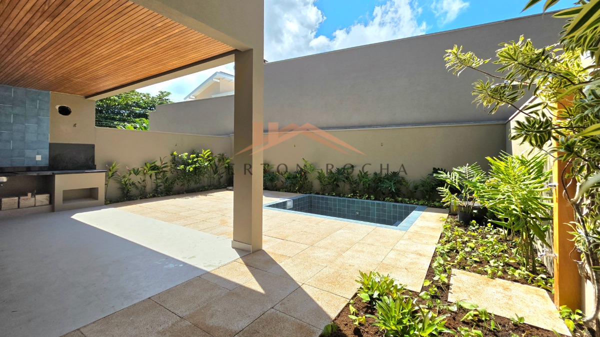 - Espaço gourmet com churrasqueira e quintal com jardim e piscina privativa.