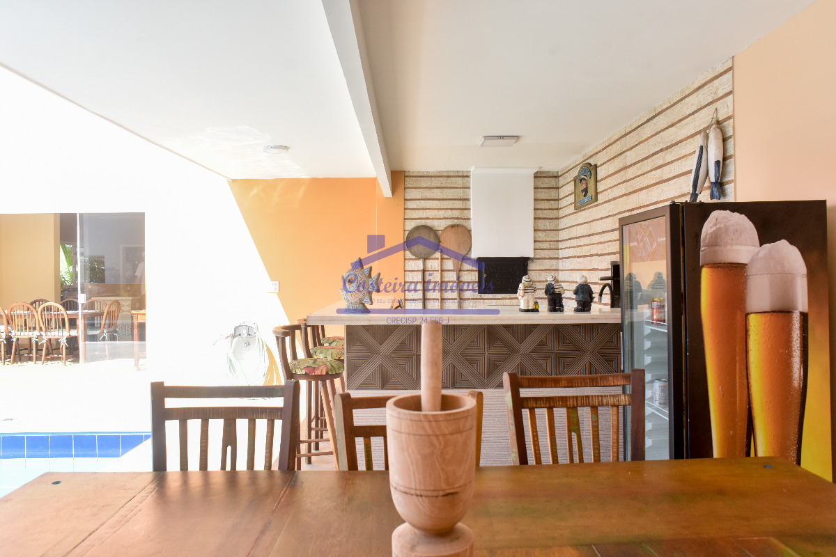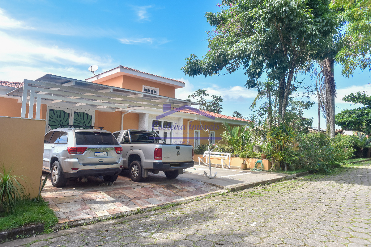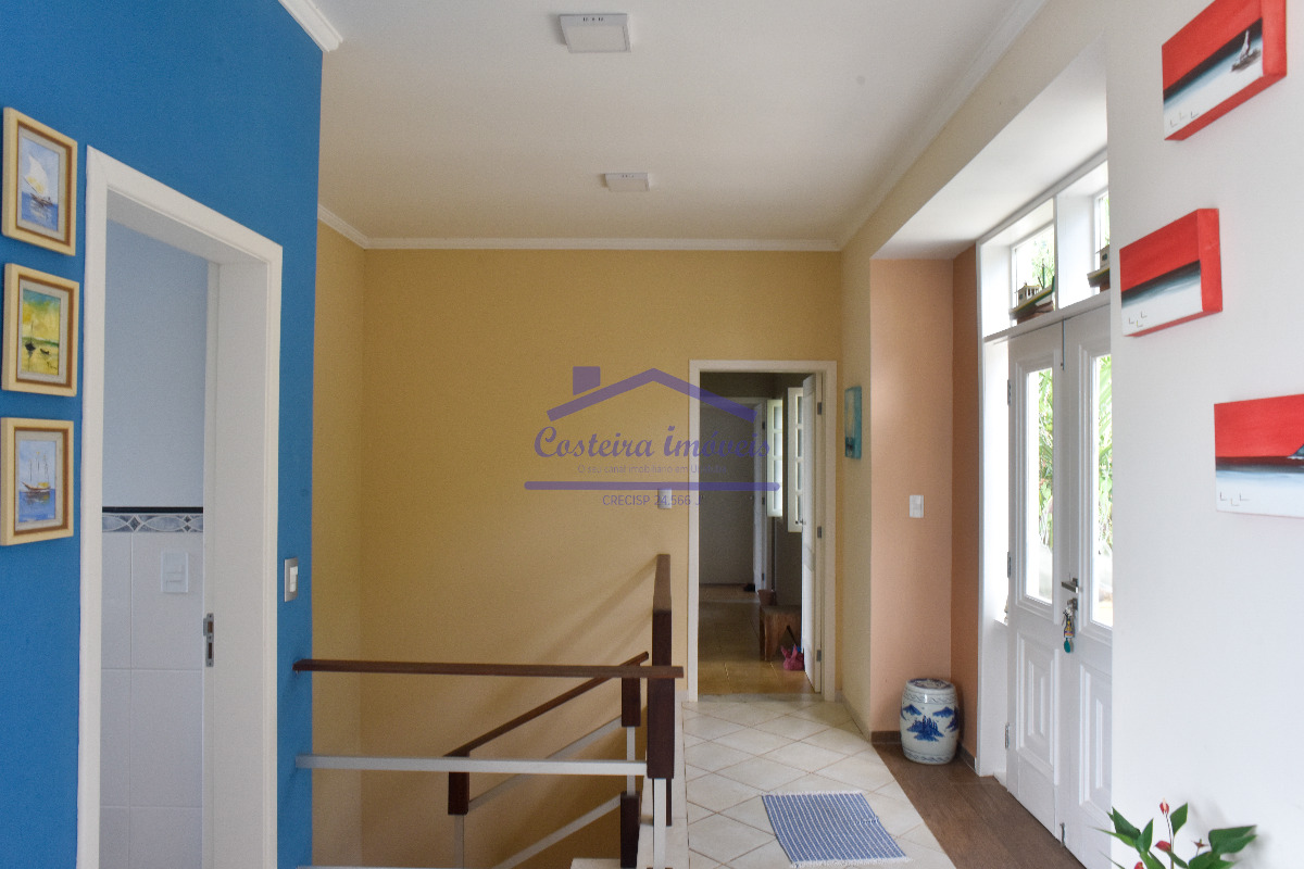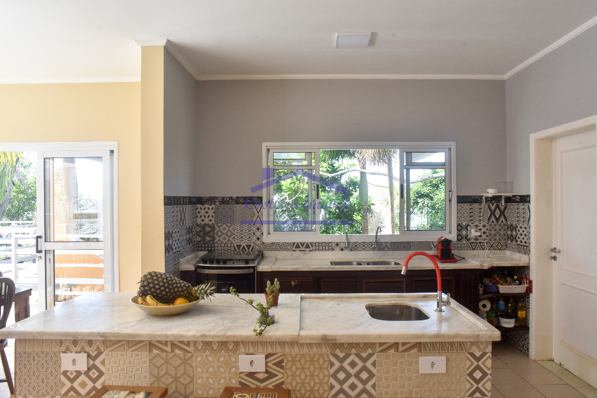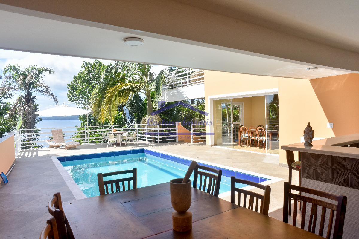 Excelente casa em condomínio, com belíssima vista para o mar, para você que busca conforto, segurança e poder desfrutar de uma vista maravilhosa todos os dias; composta por sala ampla, copa, cozinha, duas despensas, 04 ótimas suítes, lavabo, área de serviço e área de serviço de apoio, salão, deck solarium com piscina aquecida a gás, bela área gourmet completa, com forno a lenha, churrasqueira... Conta também com duas vagas de garagem cobertas, escada de acesso a costeira e casa de caseiro (sala, cozinha, banheiro social e dormitório).