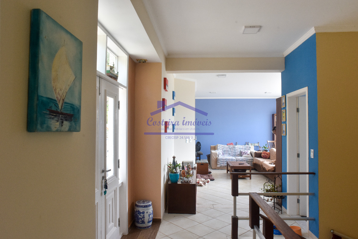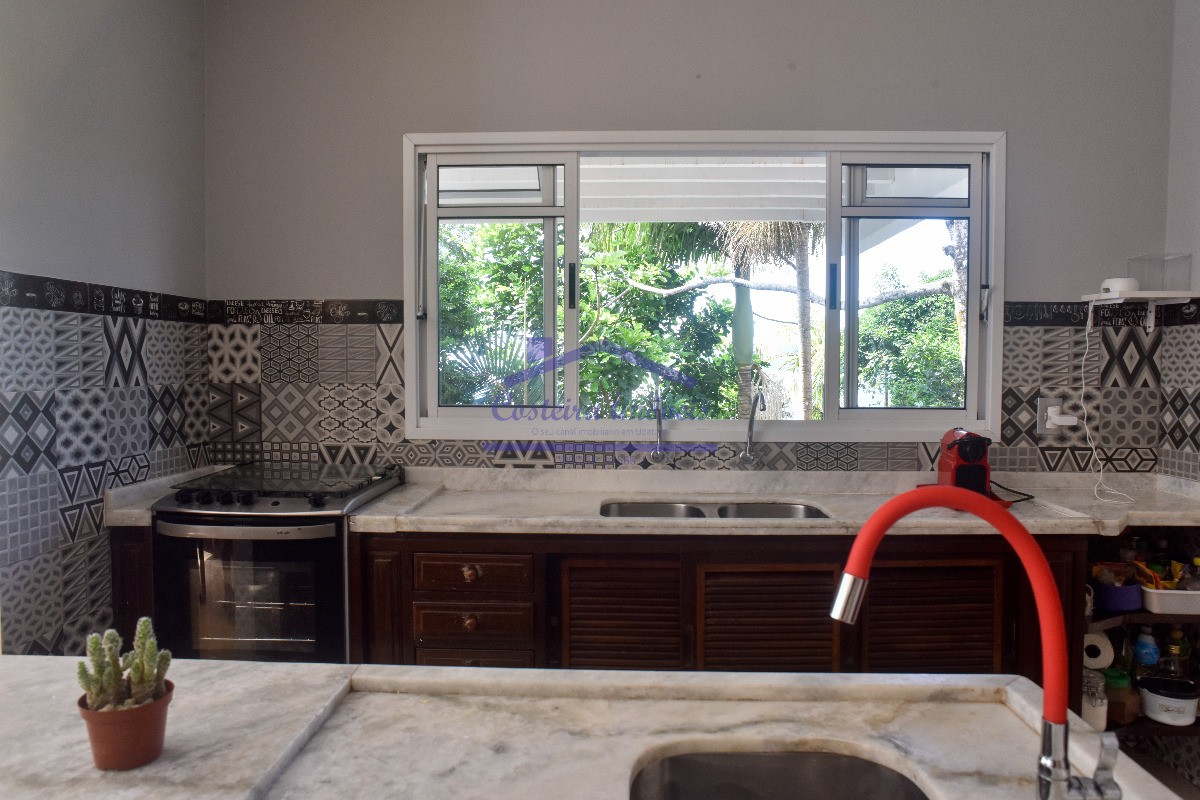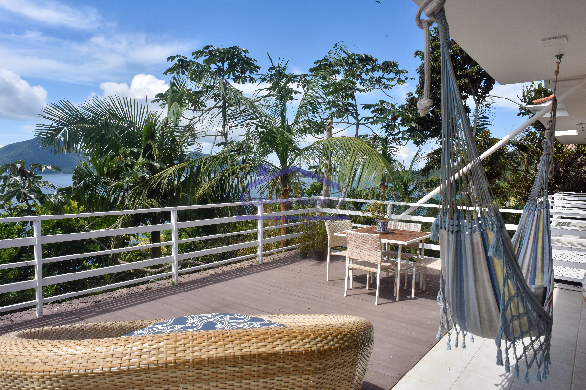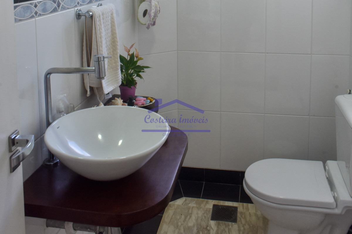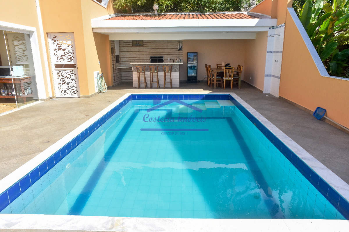 Excelente casa em condomínio, com belíssima vista para o mar, para você que busca conforto, segurança e poder desfrutar de uma vista maravilhosa todos os dias; composta por sala ampla, copa, cozinha, duas despensas, 04 ótimas suítes, lavabo, área de serviço e área de serviço de apoio, salão, deck solarium com piscina aquecida a gás, bela área gourmet completa, com forno a lenha, churrasqueira... Conta também com duas vagas de garagem cobertas, escada de acesso a costeira e casa de caseiro (sala, cozinha, banheiro social e dormitório).