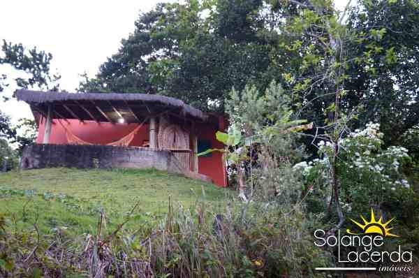O imóvel (pequeno), tem 2 dormitórios, Sala de Estar, Cozinha, 1 Banheiro Social, Varanda, e um Deck pra você deitar na rede e só apreciar a natureza.