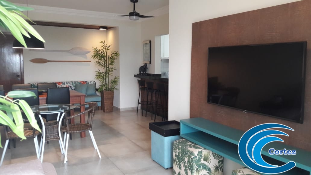 Lindo apartamento com vista para o mar! São 2 dorms (1 suíte) com ar condicionado, varanda, cozinha, área de serviço e sala de estar/jantar com ventiladores de teto.