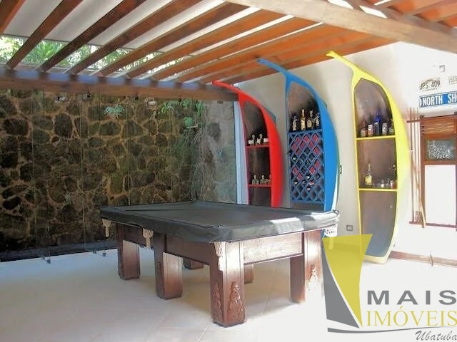 Belíssima casa, com alto padrão de acabamento, moderna, arejada e clara. O imóvel conta com 10 suítes, sendo 6 delas externas (acomodam cerca de 12 pessoas) e 4 internas, nas quais 3 contam com banheiras de hidromassagem e 1 com ducha a jato. Todas elas com camas king size. Salas integradas, salão de jogos, cozinha, lavabo, sala zen, churrasqueira, lareira, área gourmet com fogão a lenha, garagem espaçosa e um lindo jardim. Uma verdadeira obra de arte construída em 1.000 m² de área útil, a apenas 30 metros da Praia do Prumirim