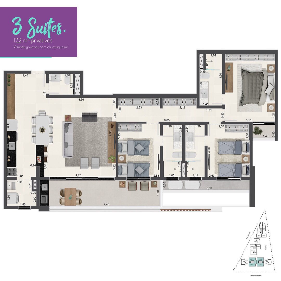 Lançamento Aruna Resort Enseada, têm uma super localização privilegiada à 70m da praia. No Aruna todos os detalhes foram planejados para proporcionar bem-estar e integração com a natureza, em um projeto autêntico, exclusivo e sofisticado. Com a comodidade, segurança e conforto que sua família merece é a opção ideal para ter seu imóvel na praia. Descrição: Apartamentos de 2 à 3 dormitórios; Todas as esquadrias e guarda-corpos serão de alumínio, que garantem maior durabilidade e menos manutenção (não enferruja).