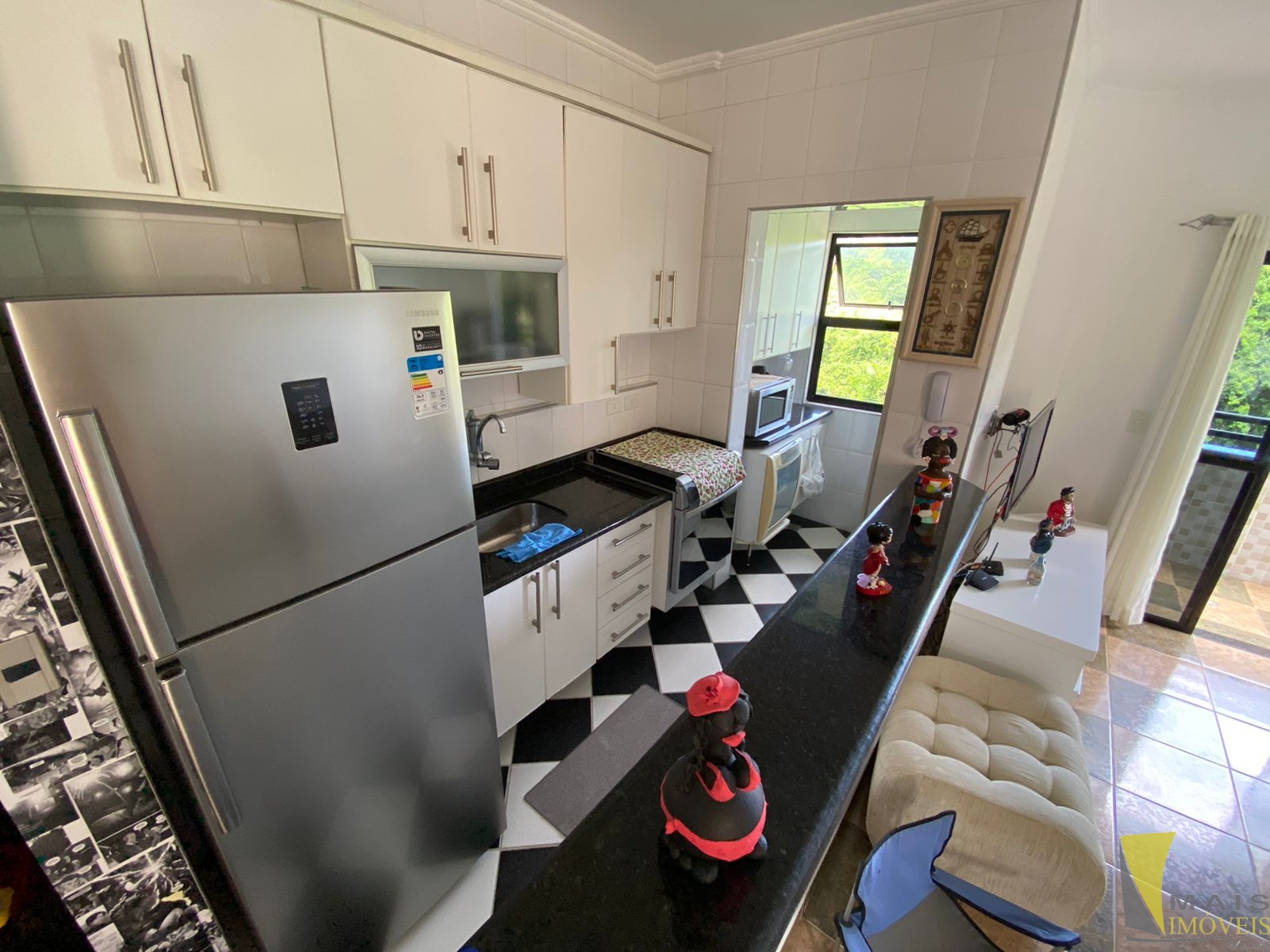 São 164m2, sendo 110 de área construída, englobando dois dormitórios, sendo uma suíte e mais dois banheiros sociais, uma ampla sala com dois ambientes integrada a cozinha e uma sacada com bela vista vista da mata Atlântica.