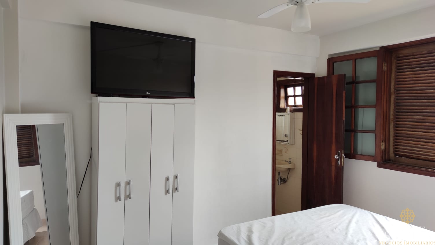 2 dormitórios, sendo 1 suíte, ambos com ventiladores de teto;