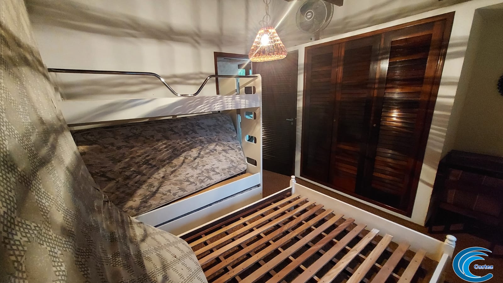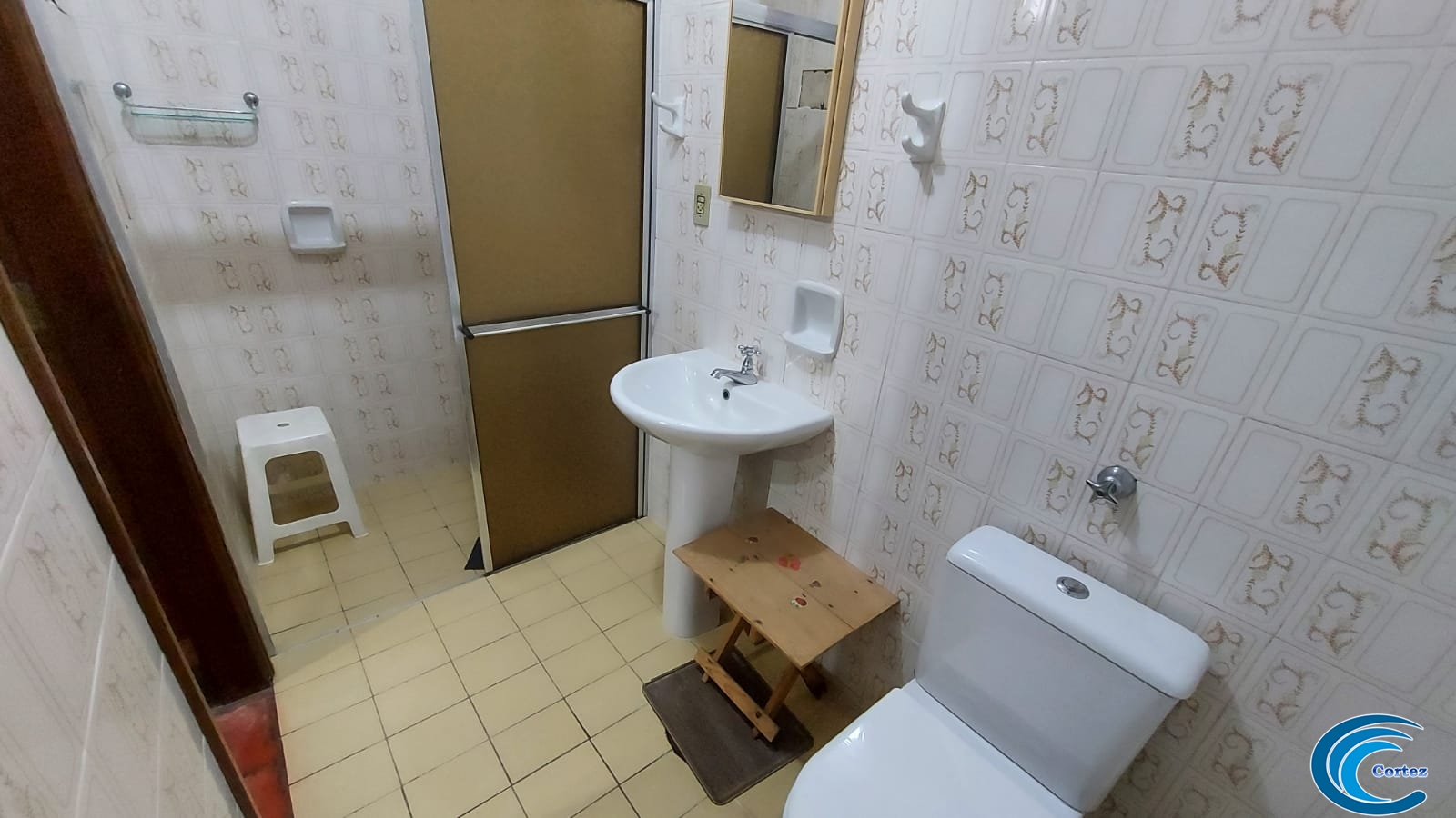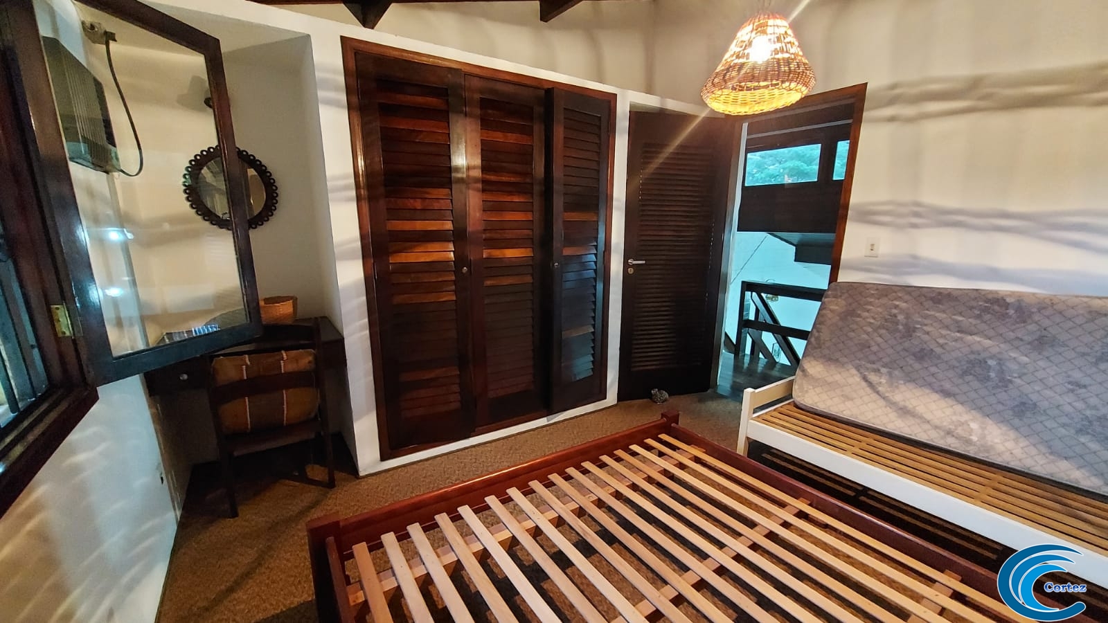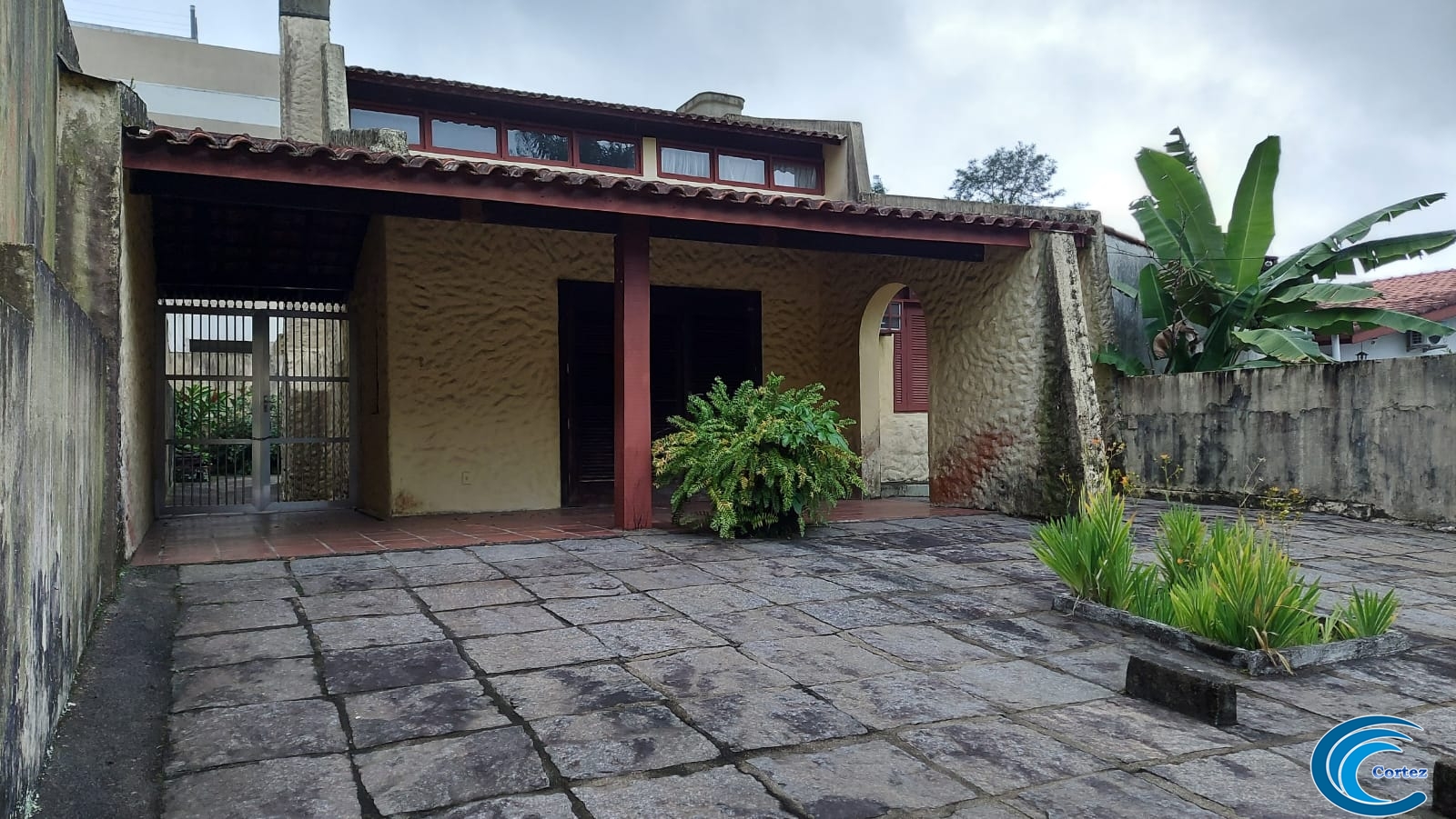 Possui amplo quintal e fica bem perto da praia, aproximadamente 150 metros.
