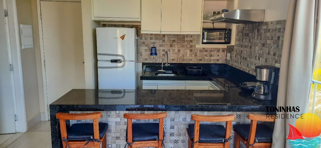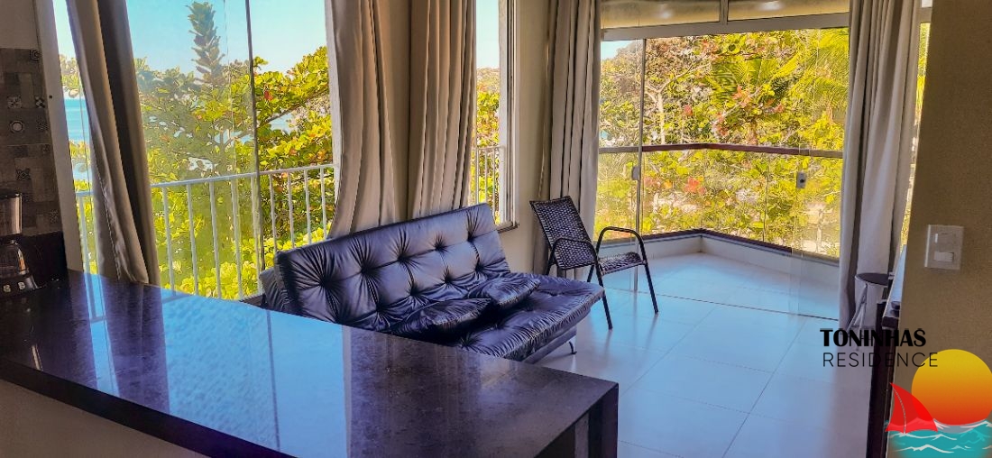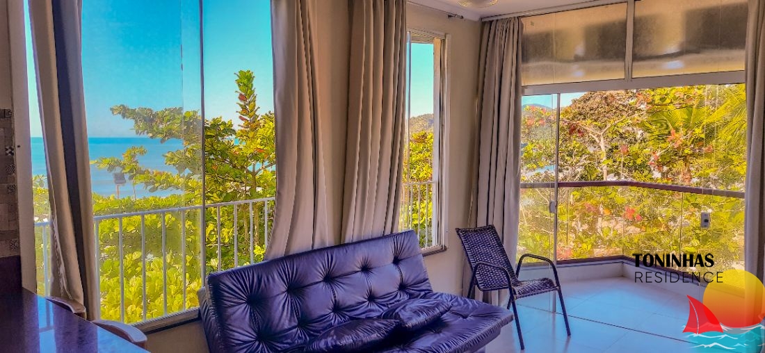 Apartamento mobiliado localizado em rua asfaltada no bairro Toninhas em Ubatuba para locação por R$ 500,00 por dia para 5 pessoas.