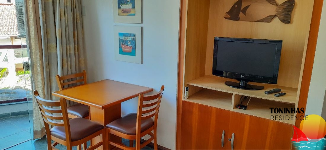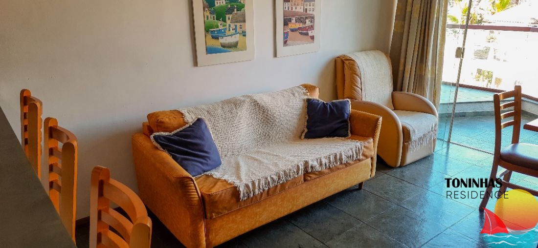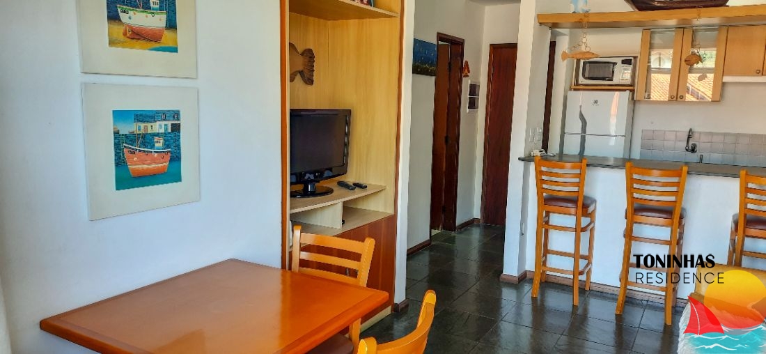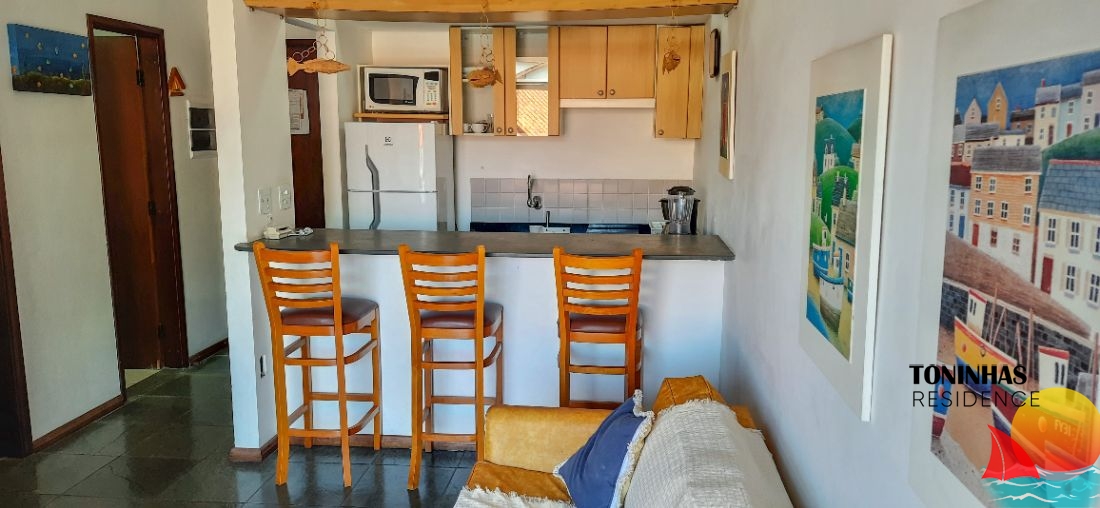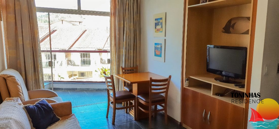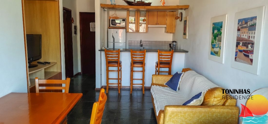 Apartamento mobiliado localizado em rua asfaltada no bairro Toninhas em Ubatuba para locação por R$ 360,00 por dia para 4 pessoas.