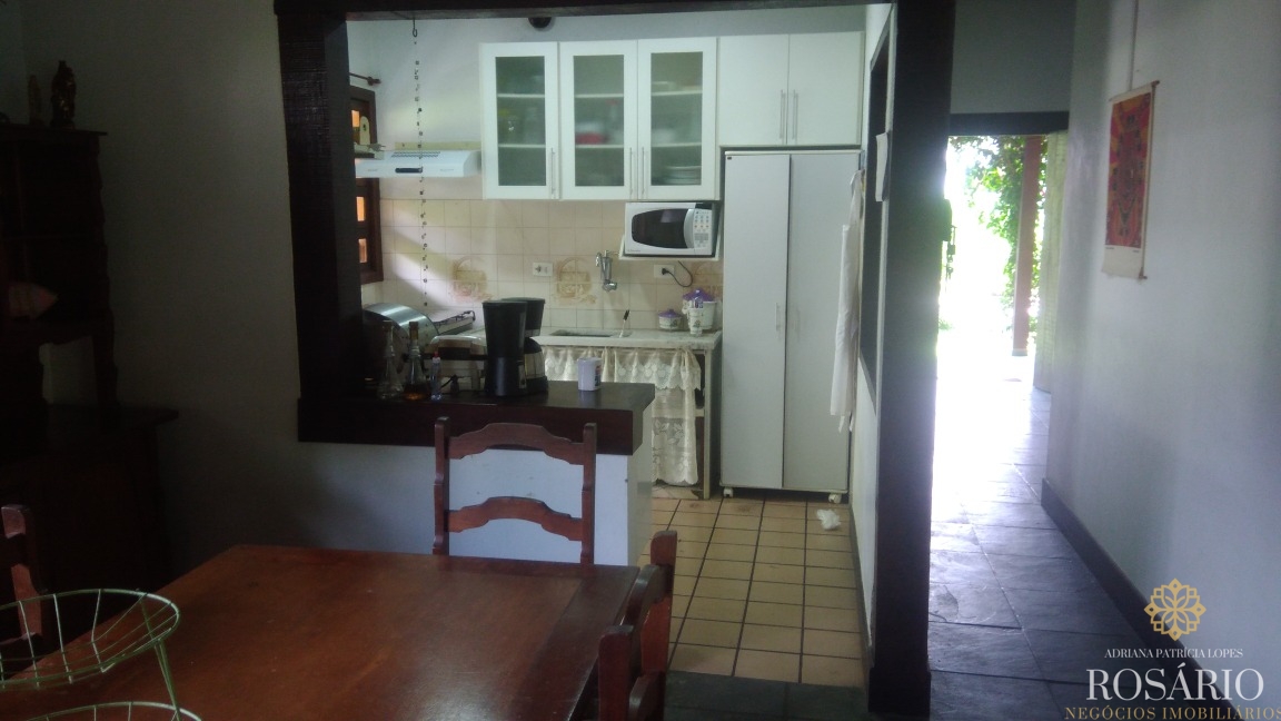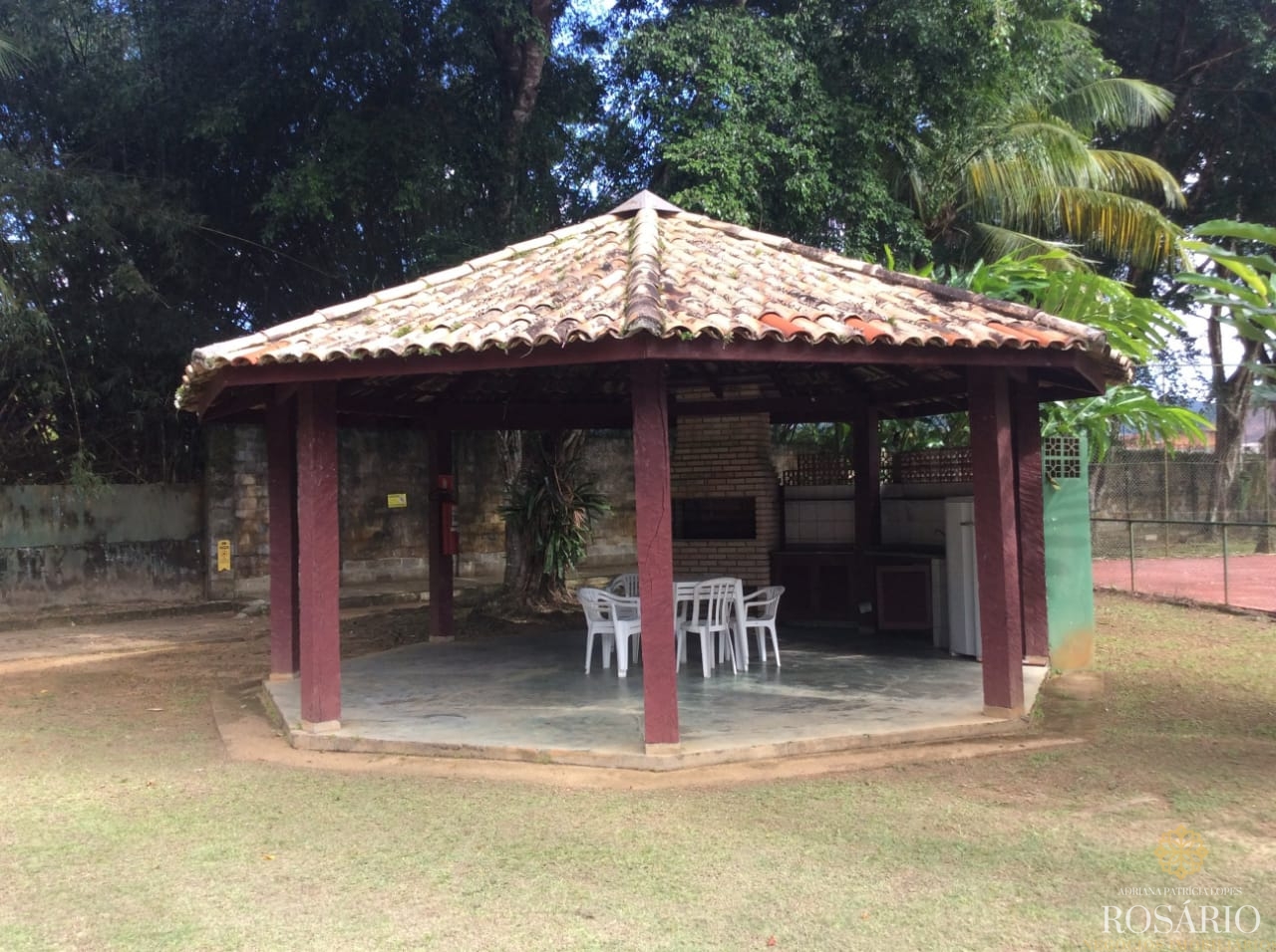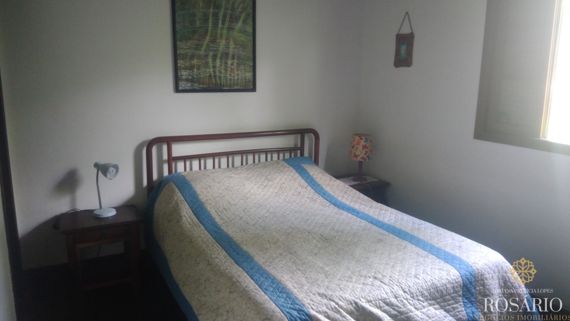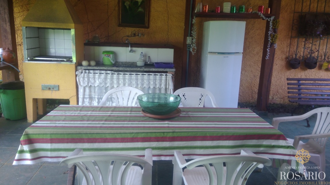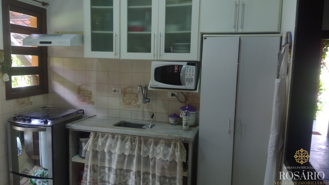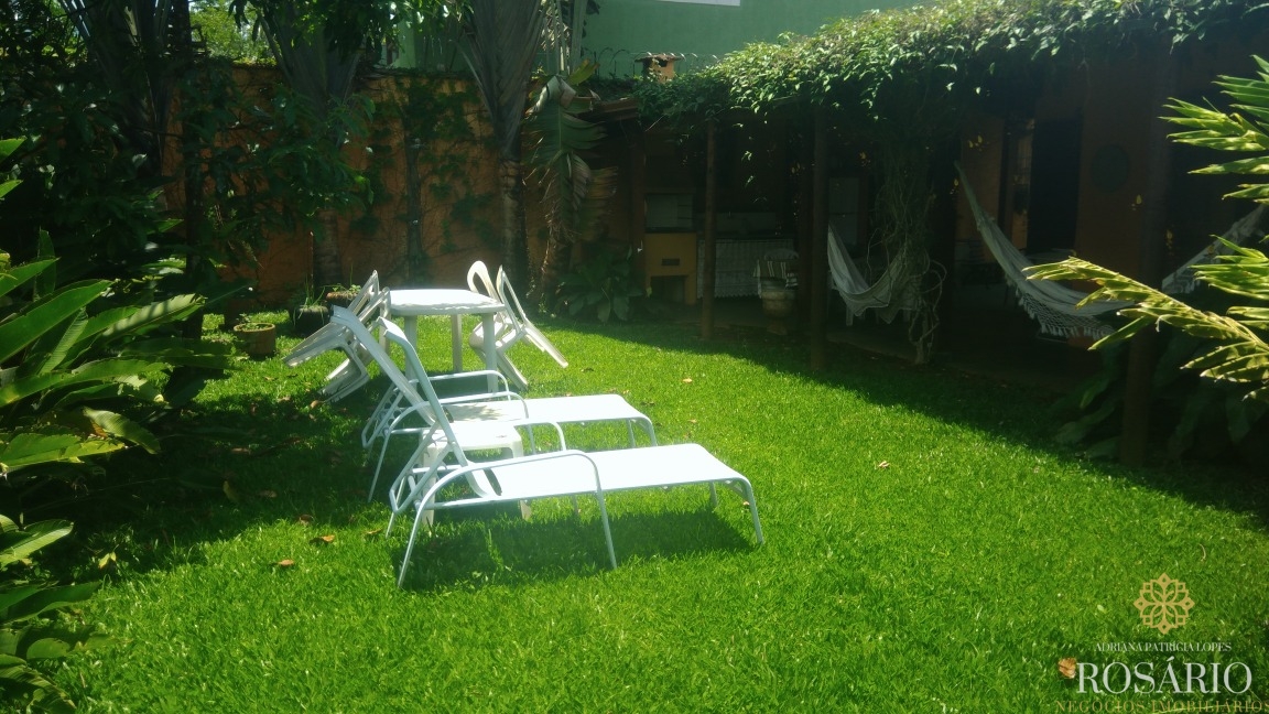 Casa térrea dentro de condomínio fechado com 3 quartos, sendo uma suíte, mais 1 banheiro, sala para 3 ambientes, cozinha americana, lavanderia, churrasqueira, varandas na frente e atrás da casa, amplo jardim com árvores frutíferas e garagem para 2 carros. O terreno tem 450m2, sendo aproximadamente 200m2 de área construída.