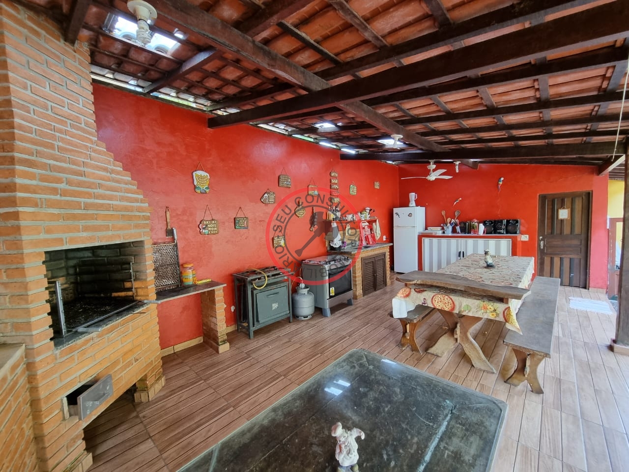 Este imóvel também tem sala de jantar, sala de estar, varanda, cozinha, armários de cozinha, garagem coberta com espaço PARA 1 CARRO E para até mais 4 veículos no descoberto.