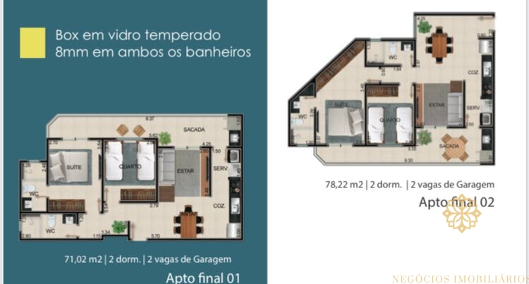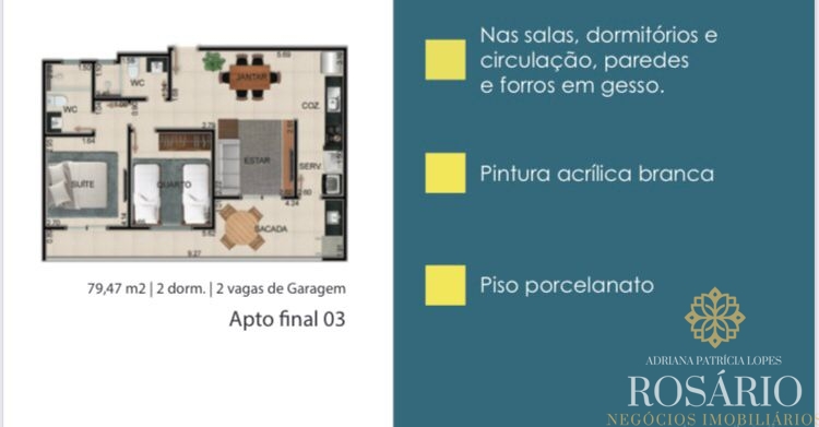 IMOVEL Á PARTIR DE 2 DORMITÓRIOS SENDO 1 SUÍTE, BANHEIRO SOCIAL, SALA, COZINHA, VARANDA GOURMET.