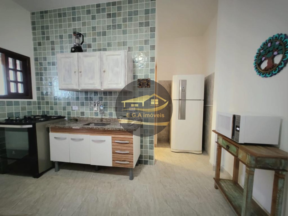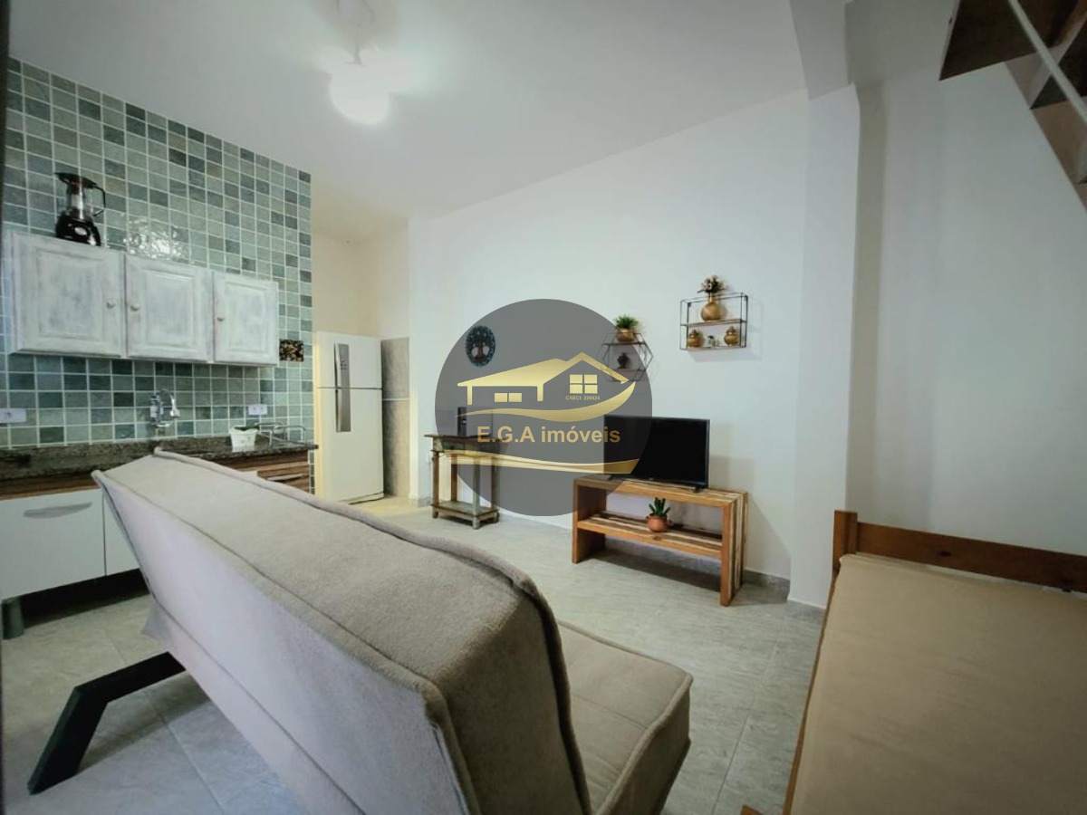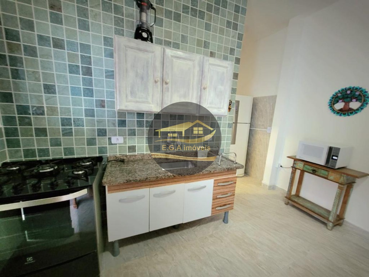 O imóvel é mobiliado e conta com armários de cozinha e embutidos, otimizando o espaço.