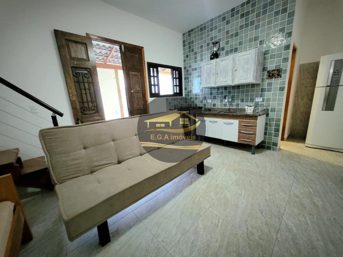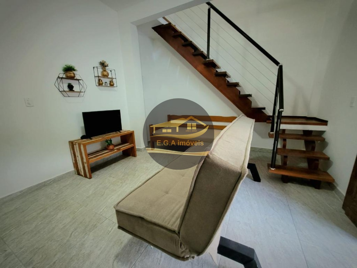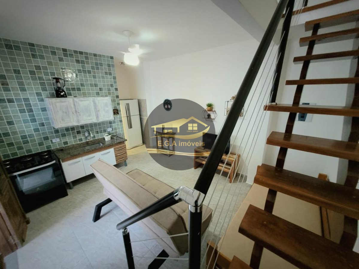 O imóvel é mobiliado e conta com armários de cozinha e embutidos, otimizando o espaço.