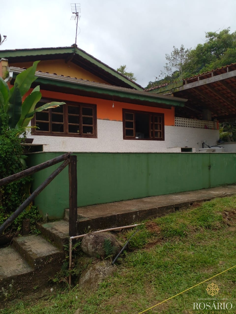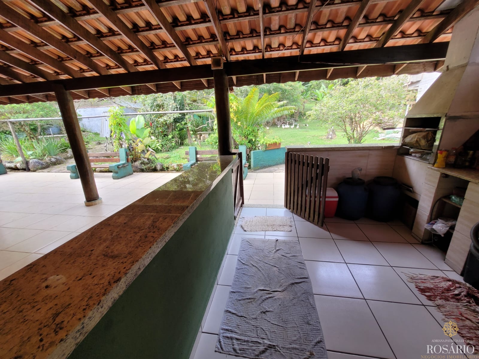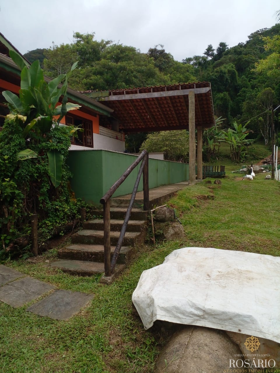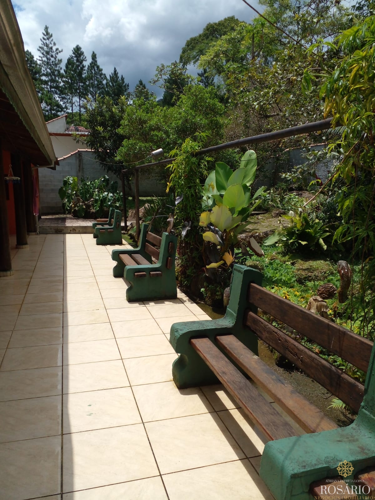 Possui 2 dormitórios, sendo 1 suíte com mezanino e 1 dormitório com closet e jacuzzi, 1 banheiro social, garagem coberta com espaço para 3 veículos. Este imóvel também tem sala de jantar, sala de estar, cozinha vista ampla com armários, cooktop e televisão, varanda ampla com churrasqueira, portão eletrônico, água da nascente ou encanada e nos fundos uma capela. Jardim majestoso com árvores frutíferas, nascente e animais exóticos como: pavão, gansos e galinhas.