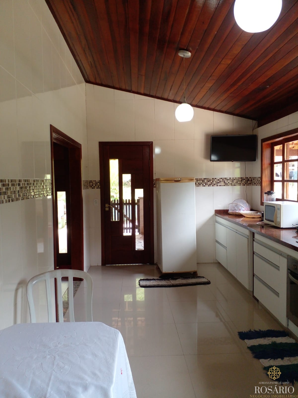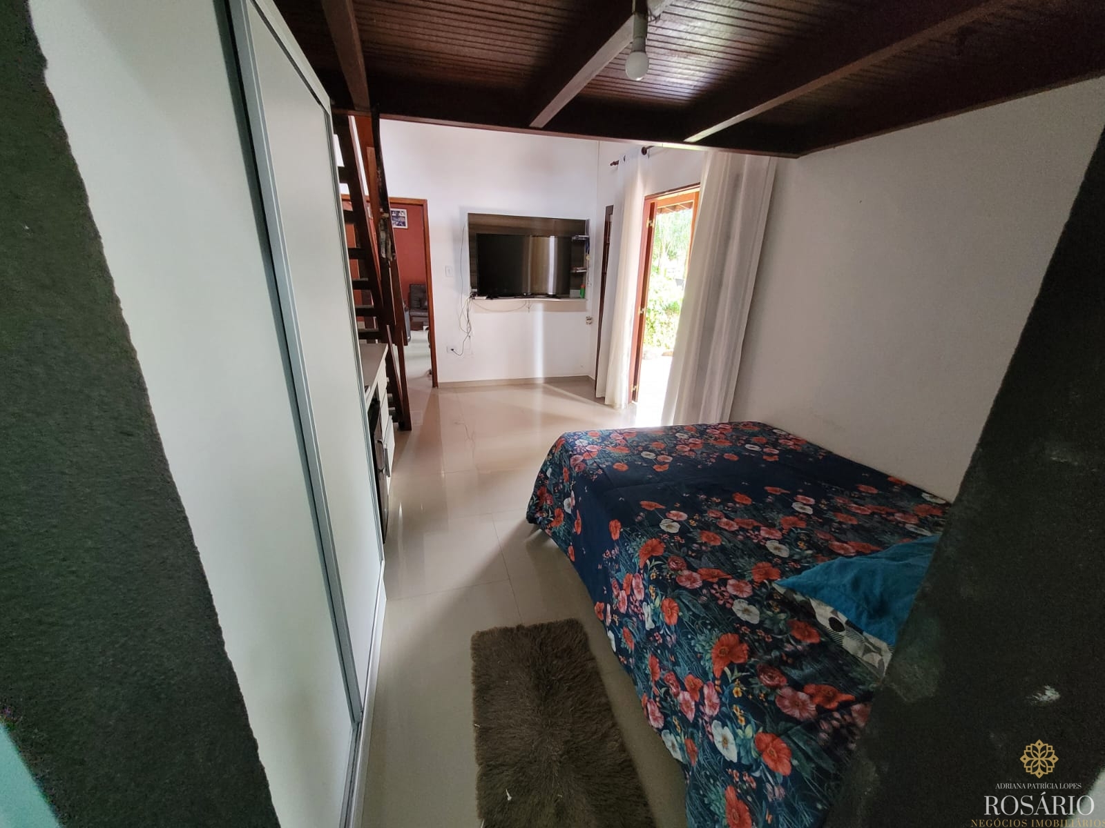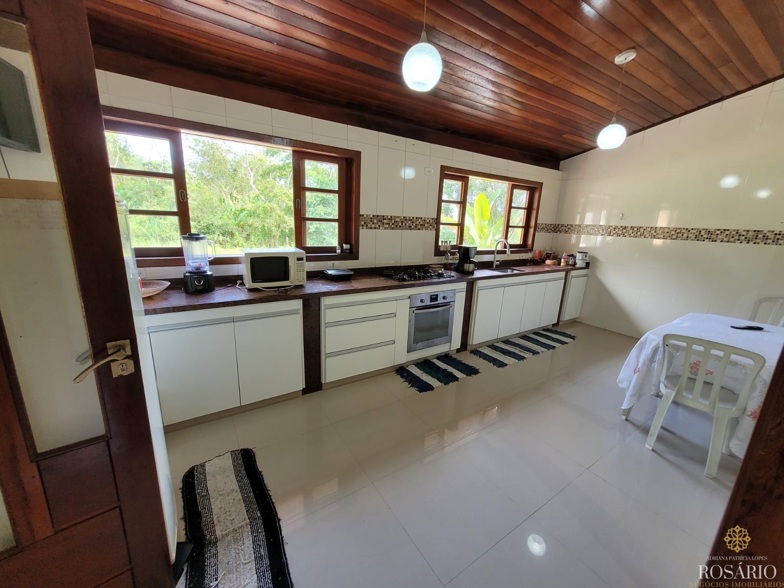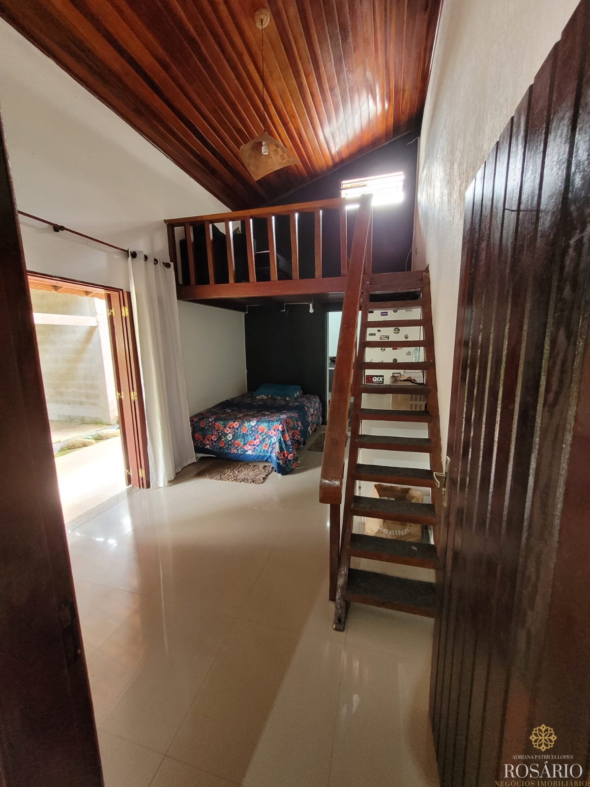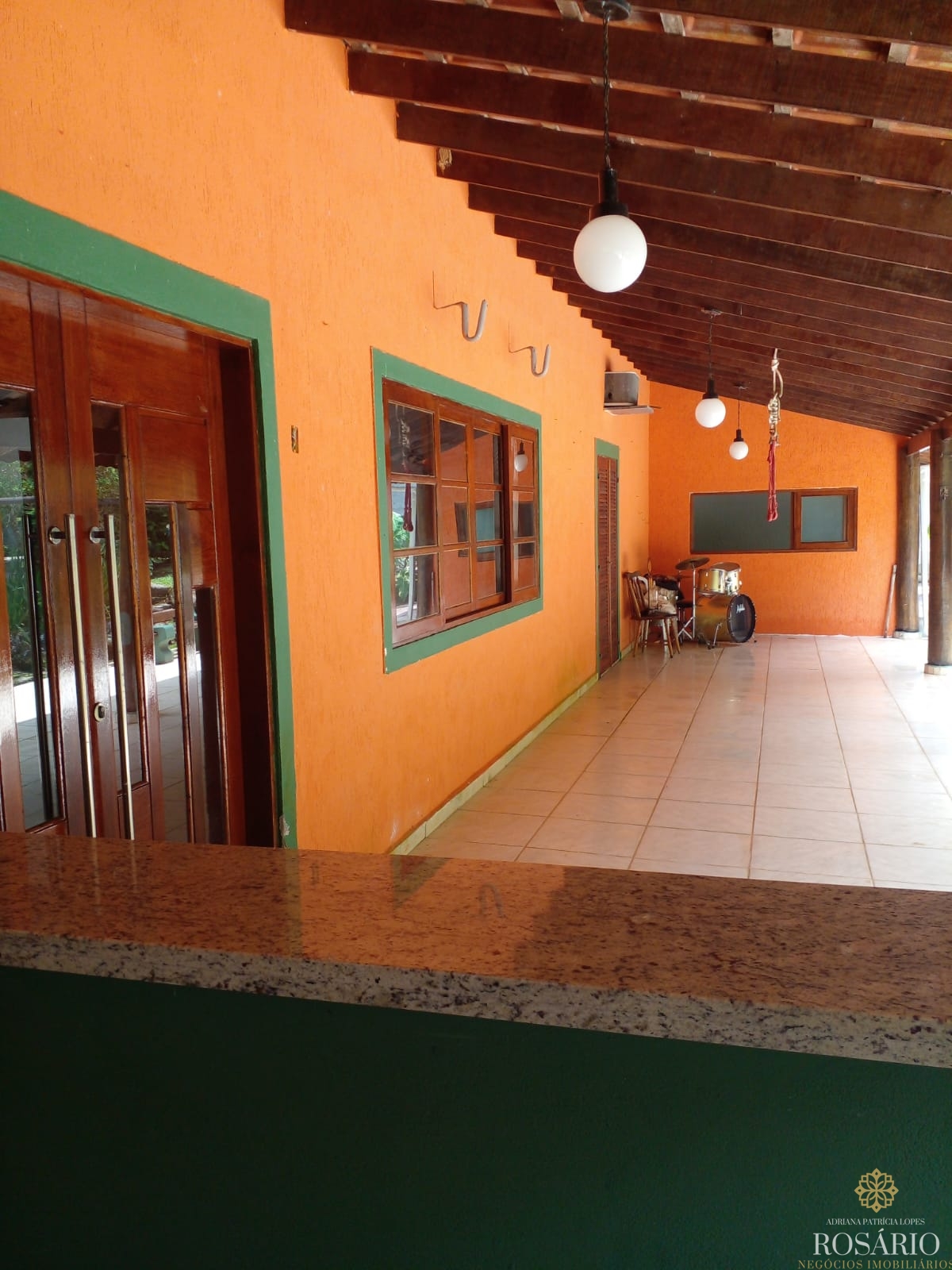 Possui 2 dormitórios, sendo 1 suíte com mezanino e 1 dormitório com closet e jacuzzi, 1 banheiro social, garagem coberta com espaço para 3 veículos. Este imóvel também tem sala de jantar, sala de estar, cozinha vista ampla com armários, cooktop e televisão, varanda ampla com churrasqueira, portão eletrônico, água da nascente ou encanada e nos fundos uma capela. Jardim majestoso com árvores frutíferas, nascente e animais exóticos como: pavão, gansos e galinhas.