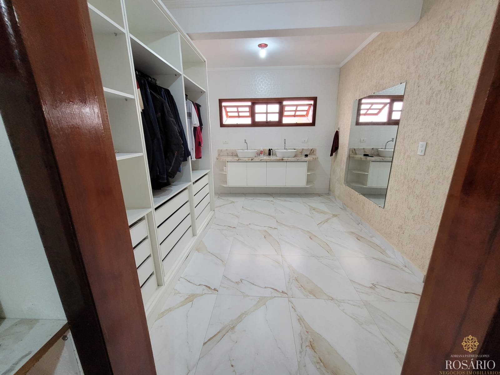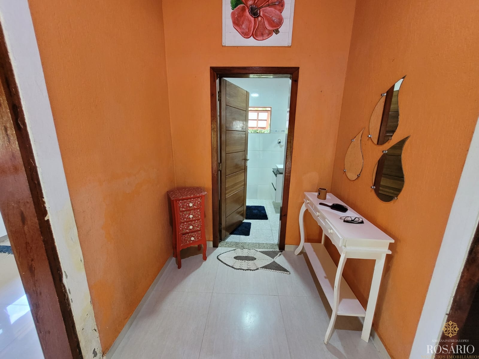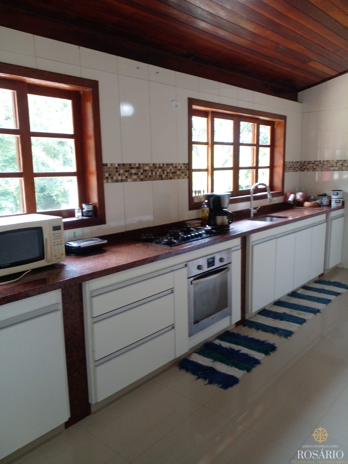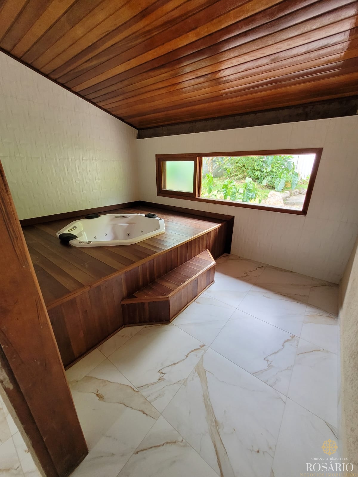 Possui 2 dormitórios, sendo 1 suíte com mezanino e 1 dormitório com closet e jacuzzi, 1 banheiro social, garagem coberta com espaço para 3 veículos. Este imóvel também tem sala de jantar, sala de estar, cozinha vista ampla com armários, cooktop e televisão, varanda ampla com churrasqueira, portão eletrônico, água da nascente ou encanada e nos fundos uma capela. Jardim majestoso com árvores frutíferas, nascente e animais exóticos como: pavão, gansos e galinhas.