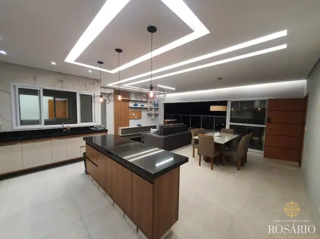Móveis planejados por todo o apartamento, teto trabalhado em gesso com luzes que trazem maior conforto, fogão cooktop, balcão da cozinha em pedras, coifa, ilha luxuosa para preparar os alimentos, quartos com armários, ar condicionado, banheiro trabalhado em mármore travertino, closet todo planejado em material claro.