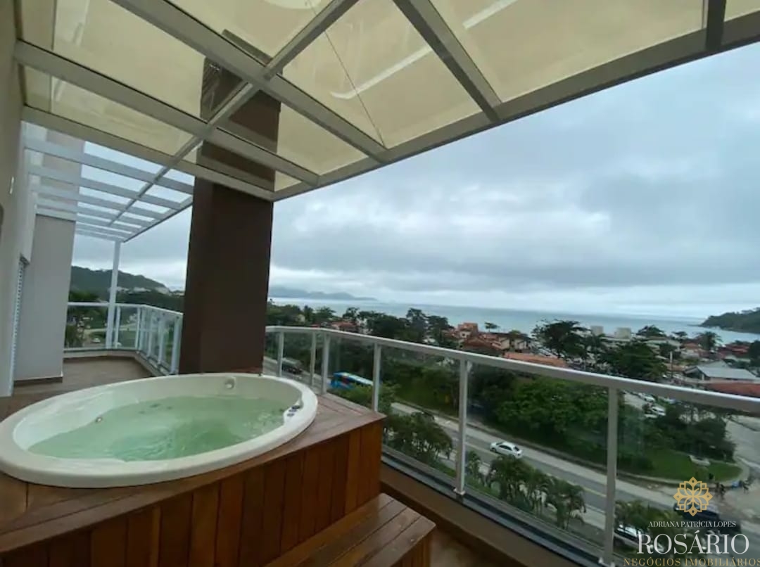 Nessa cobertura com vista para a praia das Toninhas, você poderá desfrutar de uma bela vista dentro de uma jacuzzi.