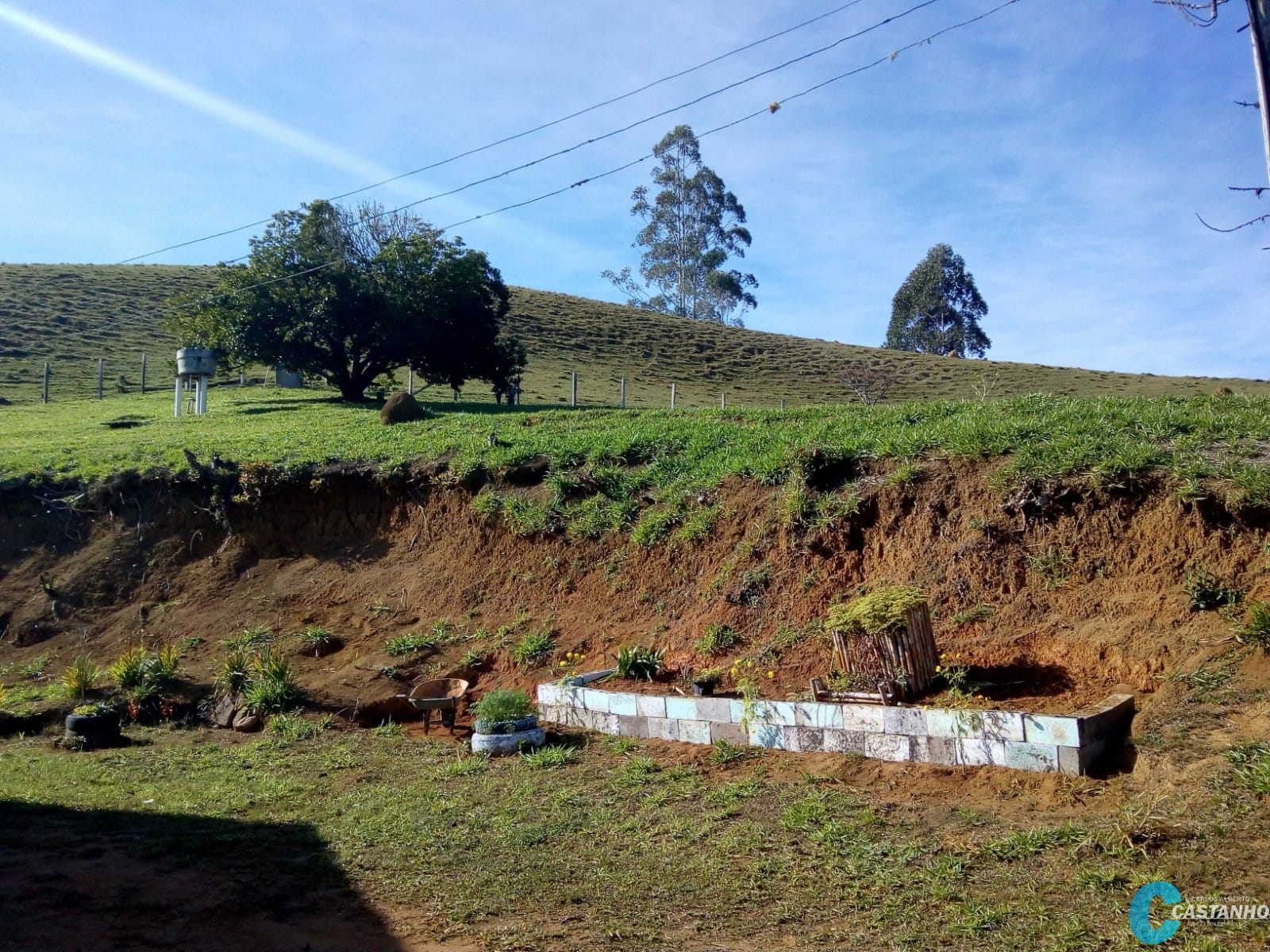 * Galpão para guardar tratores e implementos, com oficina, banheiro e escritório