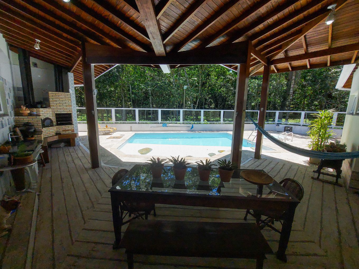 - Área gourmet, com churrasqueira, fogão a lenha e forno/ forno de pizza.