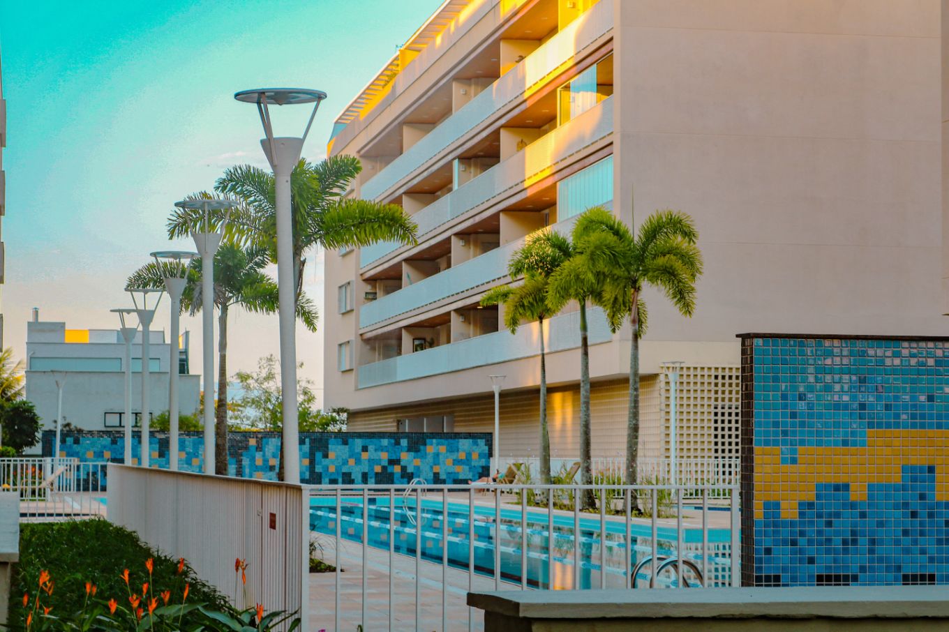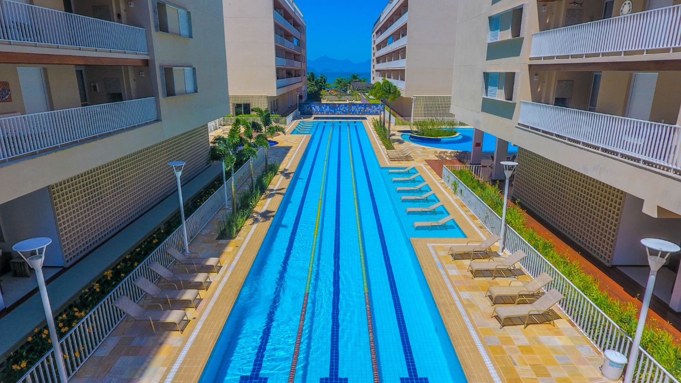 Apartamento de 96m² com cômodos amplos e uma bela pista para a piscina.