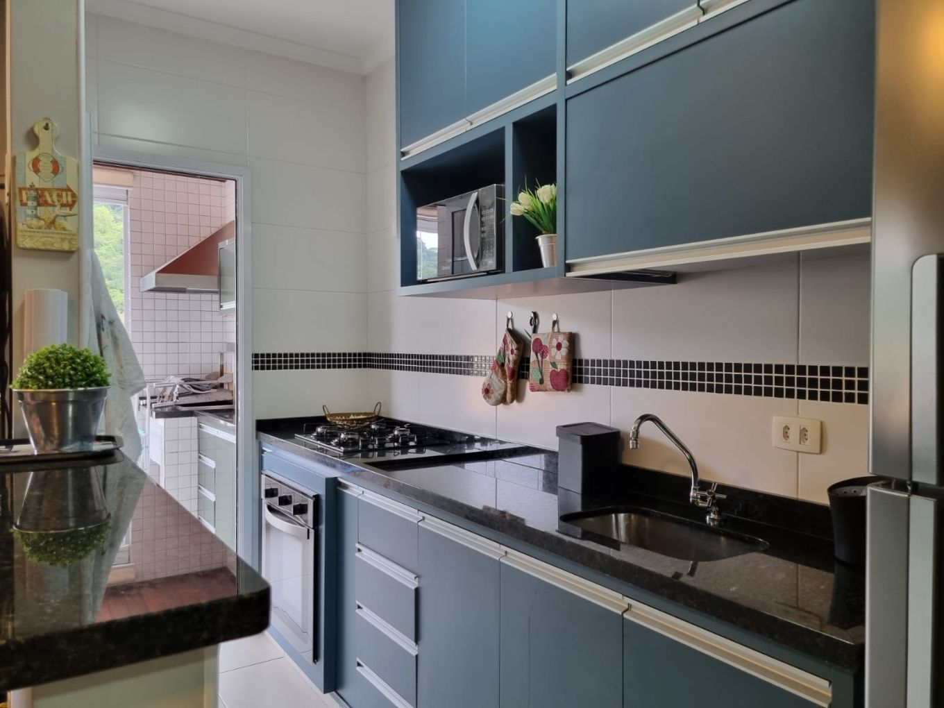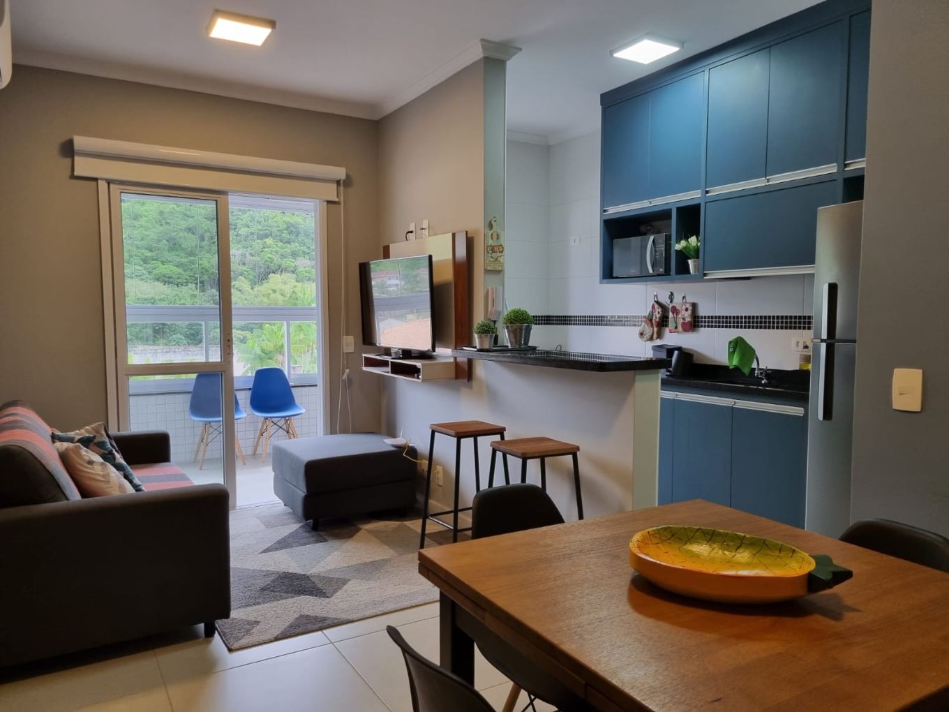 Bem próximo da praia, este apartamento possui 02 dormitórios, sendo 01 suíte. Sala 02 ambientes, varanda gourmet envidraçada.
