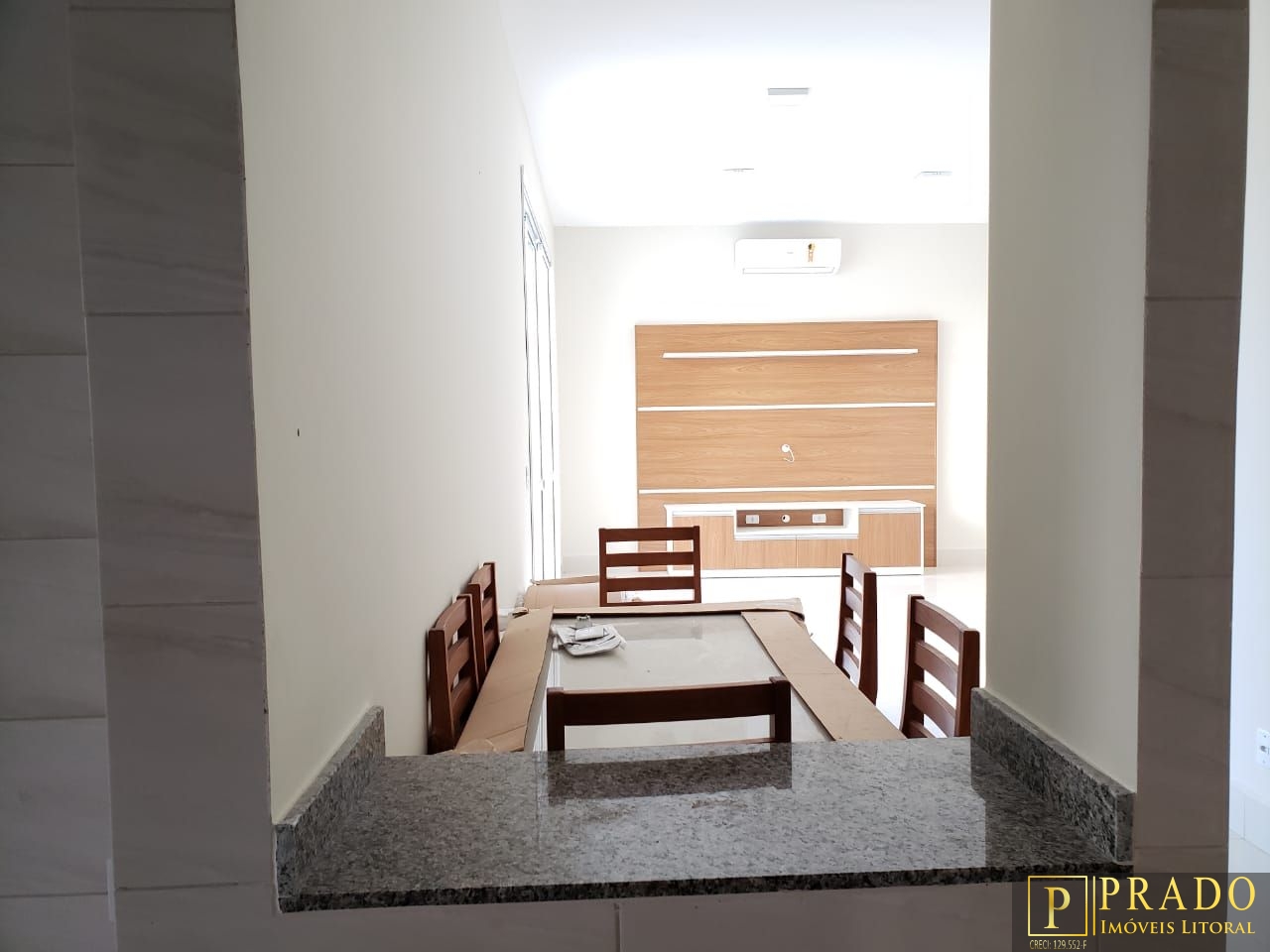 Sala de Estar/Jantar com painel para tv e tomadas individuais embutidas;