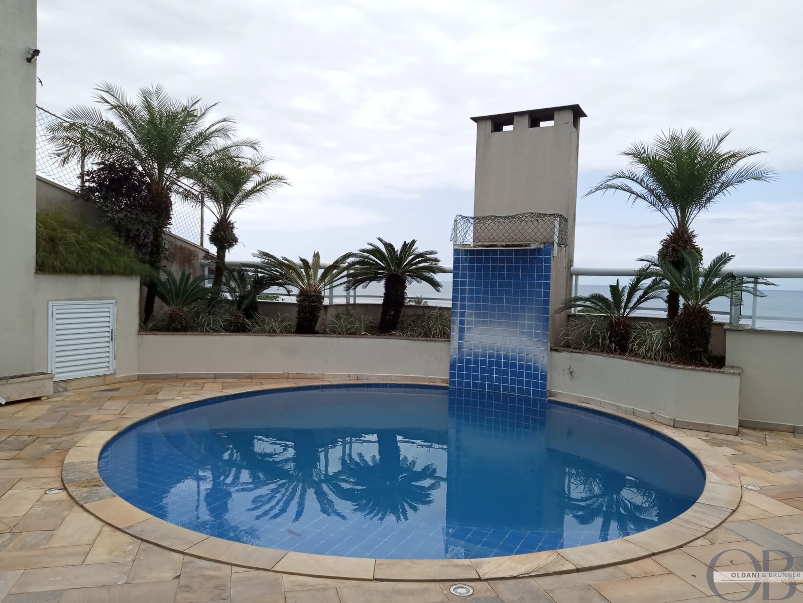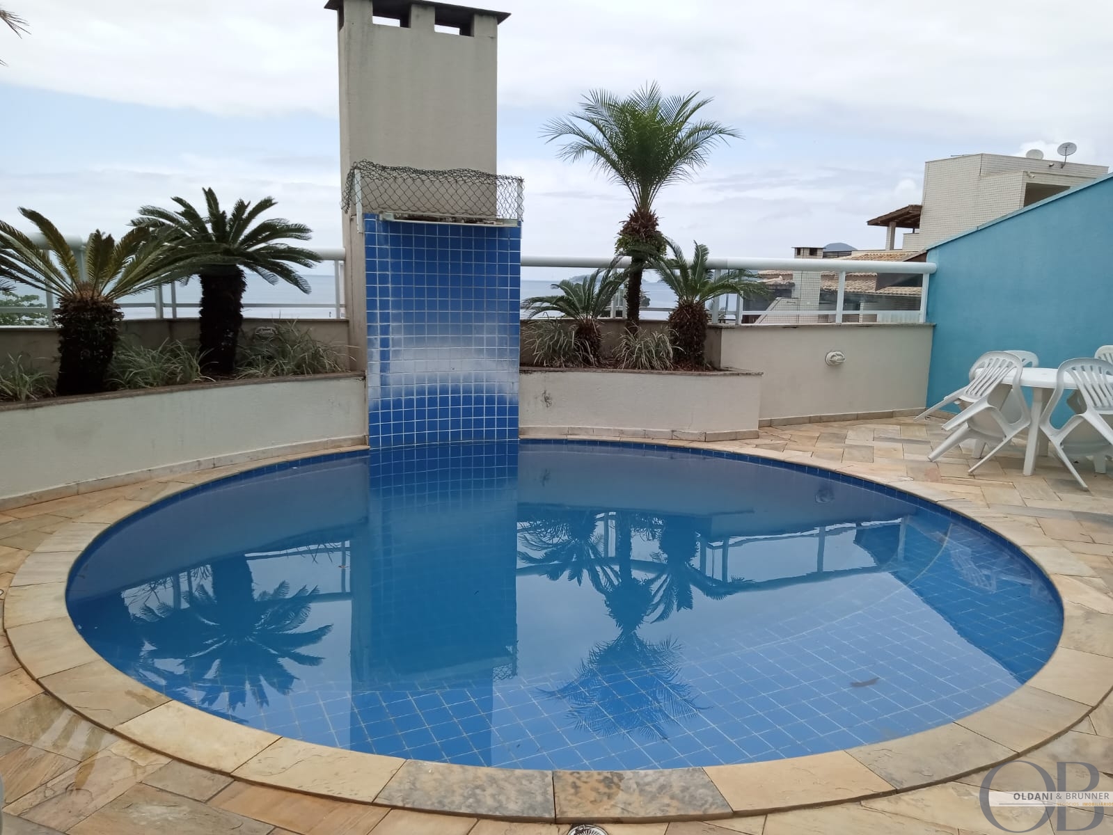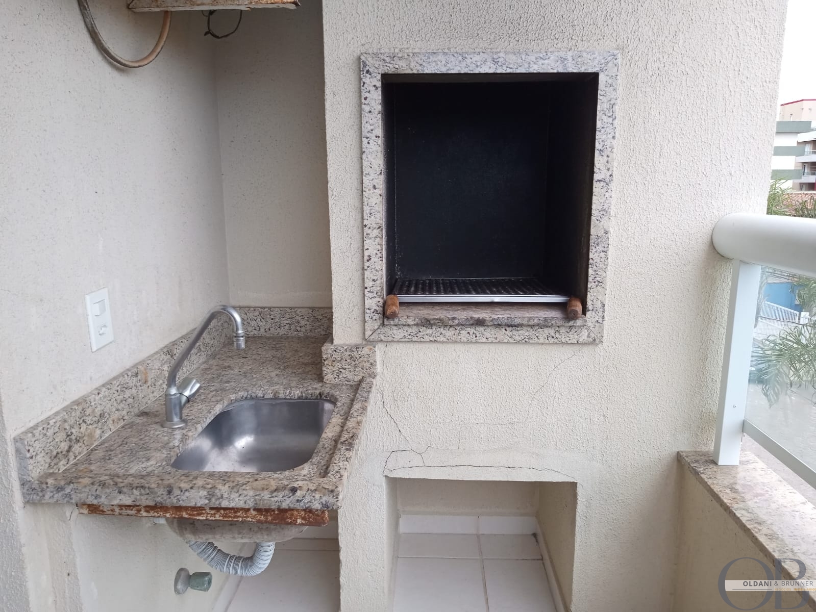Varanda gourmet perfeita para momentos de lazer, com espaço para churrasqueira e vista lateral para o mar.